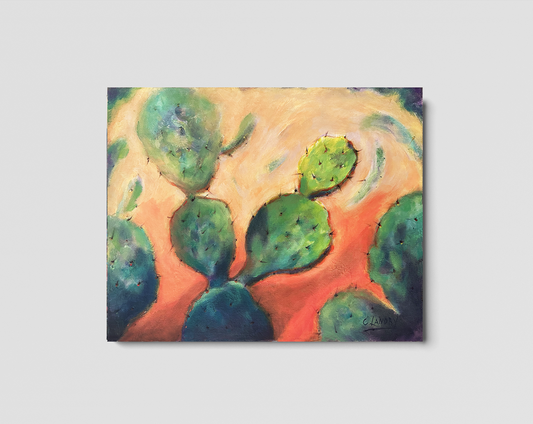 This stunning southwest cactus painting, "Abstract Cactus" by artist Carol Landry, features warm tones of...