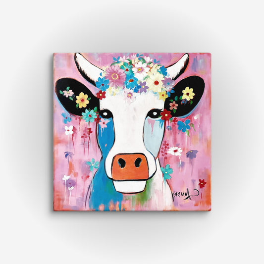 Transform any room into a playful and whimsical space with this 'Strawberry Milk Cow' wrapped...