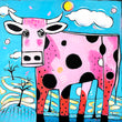 Abstract Cow Art, 'Strawberry Milk Cow', by Artist Carol Landry, 8"x 8" Copy on a Wrapped Canvas