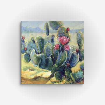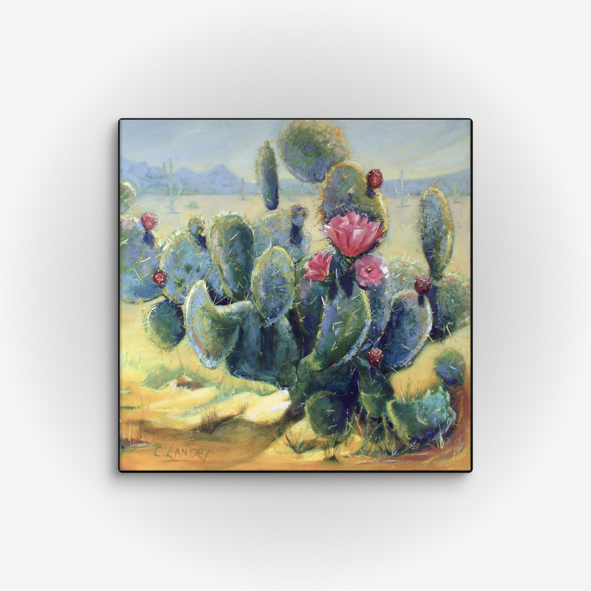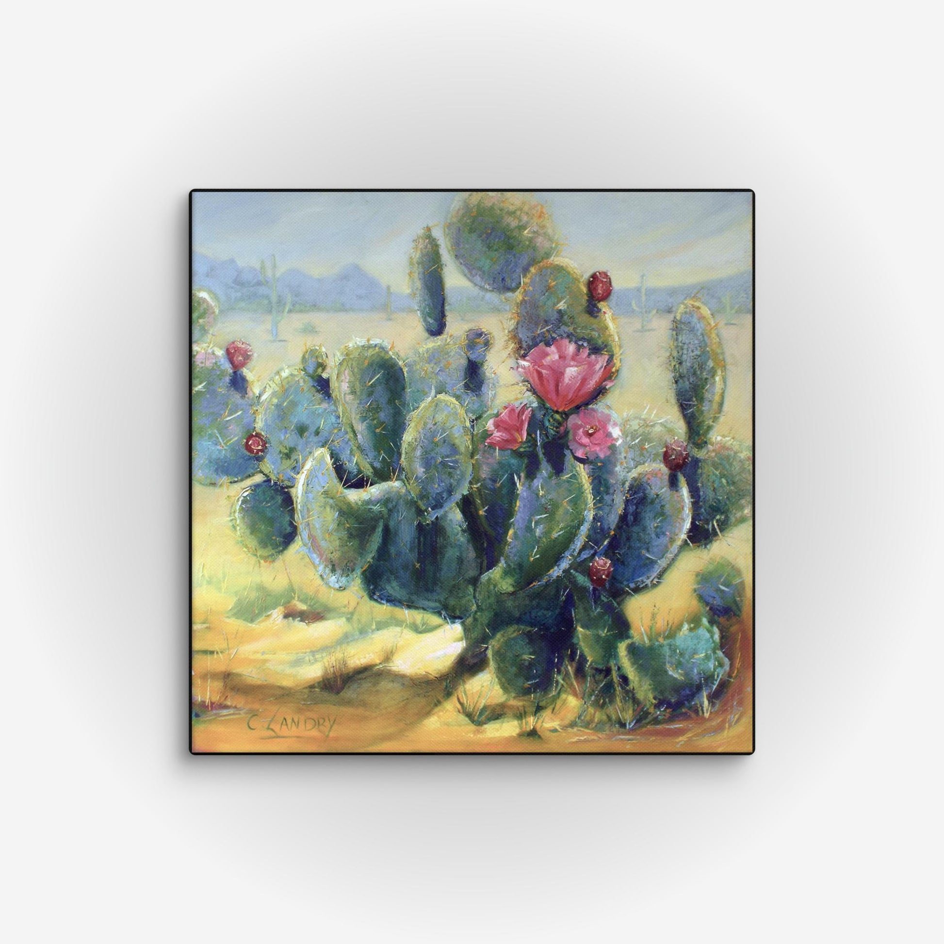 Cactus Art on Canvas, 'Pink Bloom in the Desert', by Artist Carol Landry