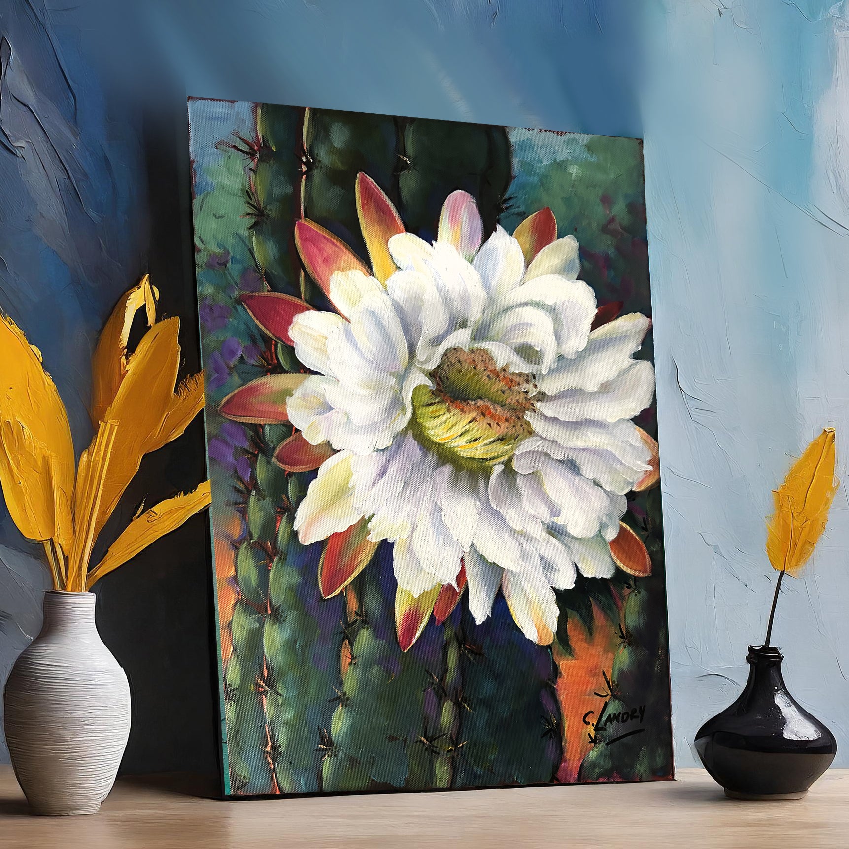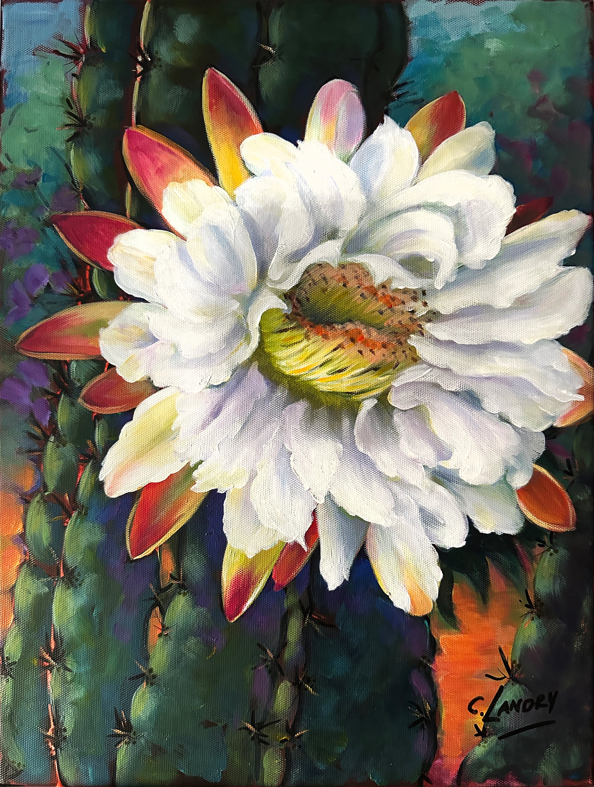 Cactus Bloom Origianl Acrylic Painting on a 12"x 16", Wall Decor Wrapped Canvas by Artist Carol Landry