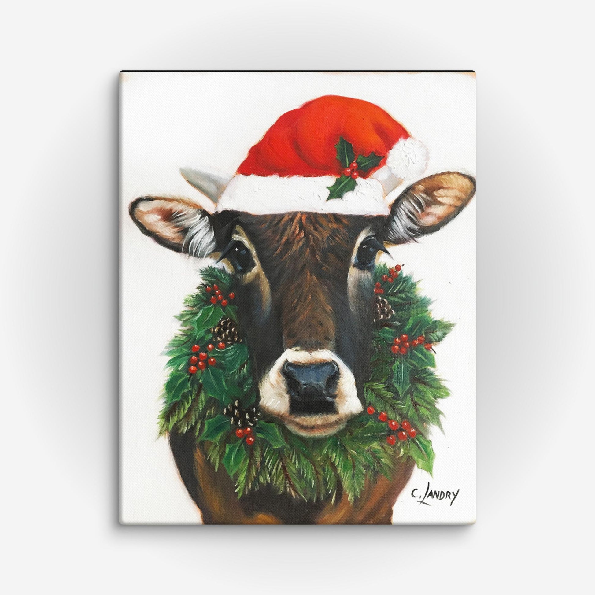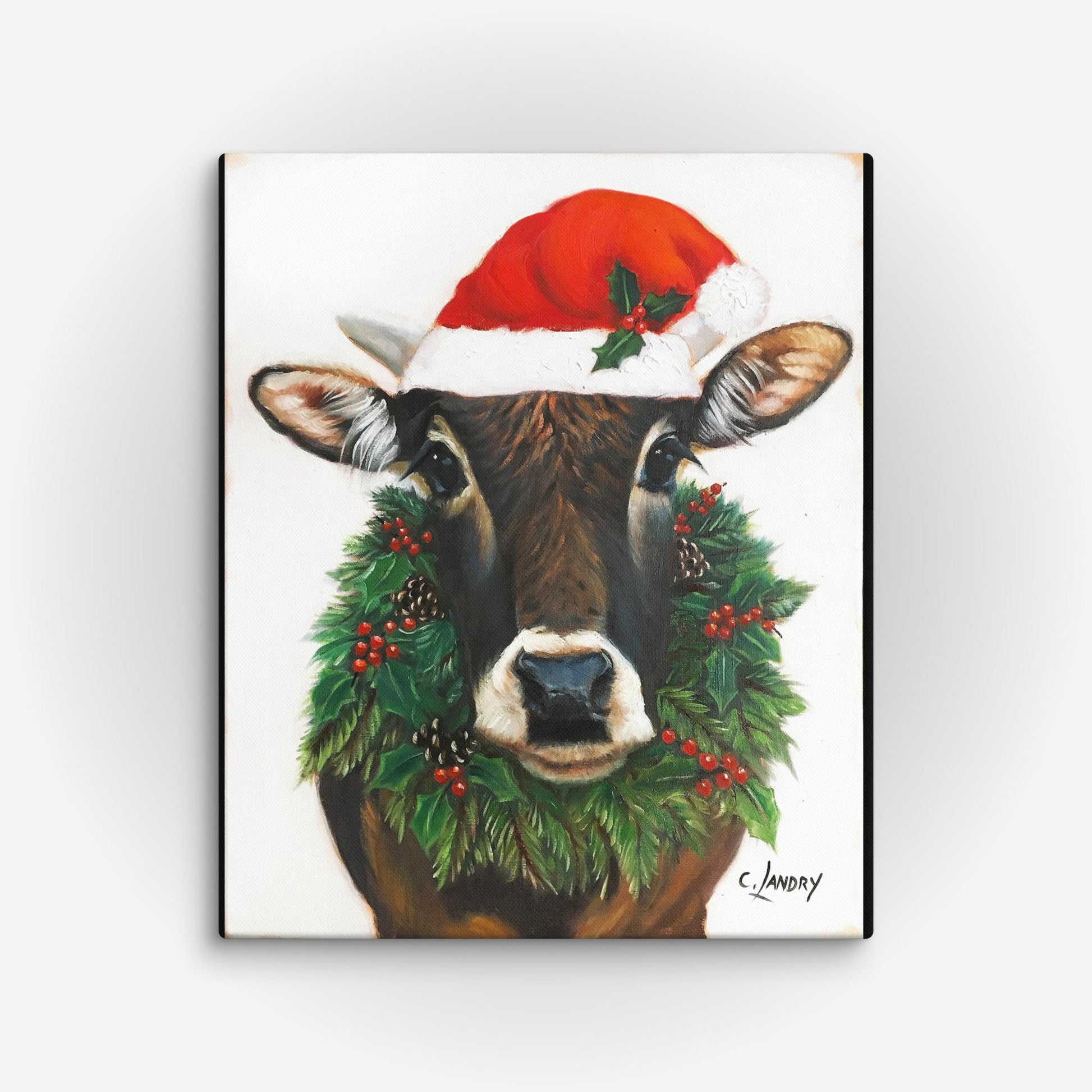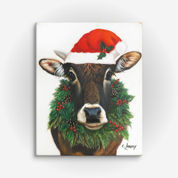 Christmas Cow, 'Tobey' Reproduction on Canvas by Artist Carol Landry