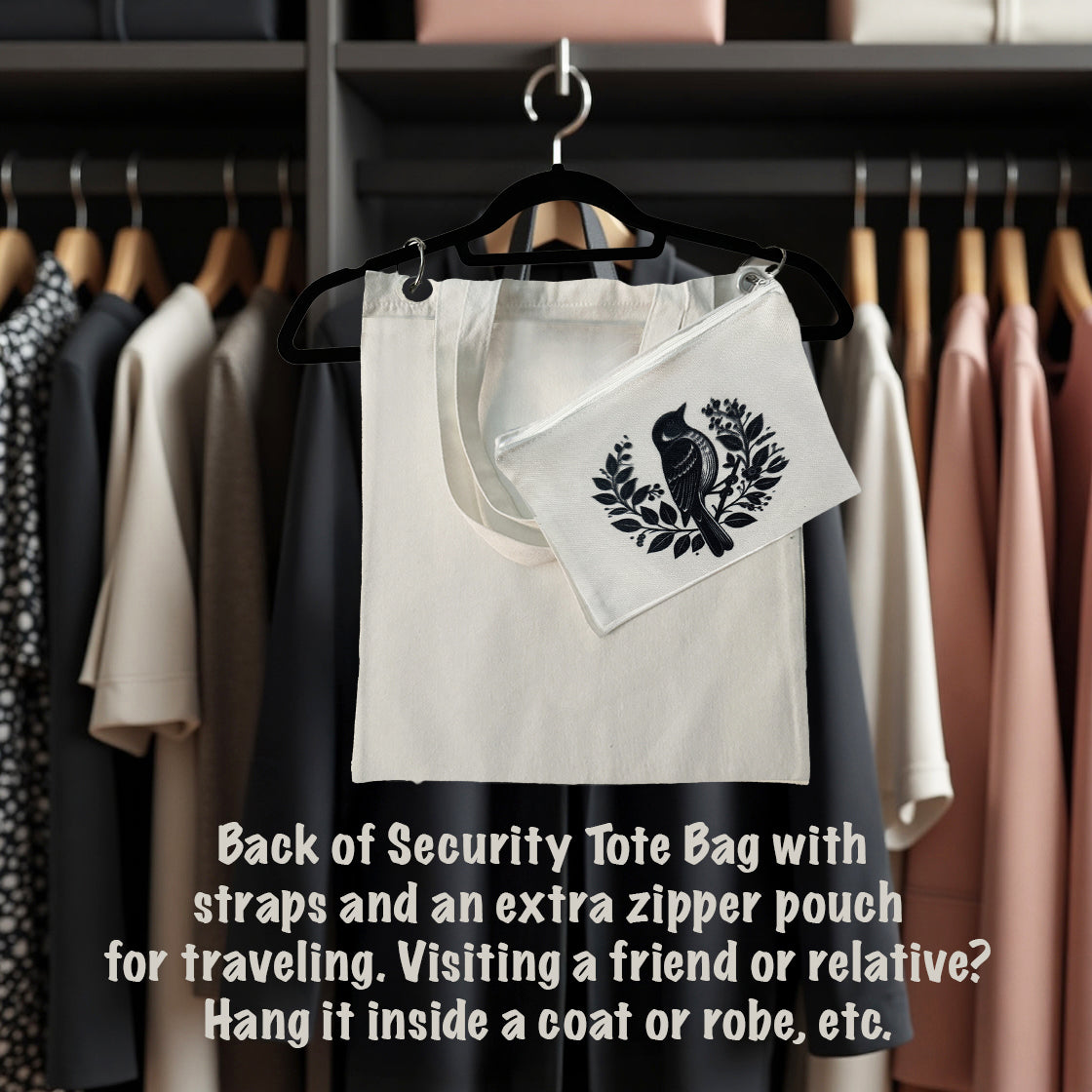 Closet Clothes Hanger, Secret Hinding Place Tote Bag for Private belongings!! 'Black Bird Design'