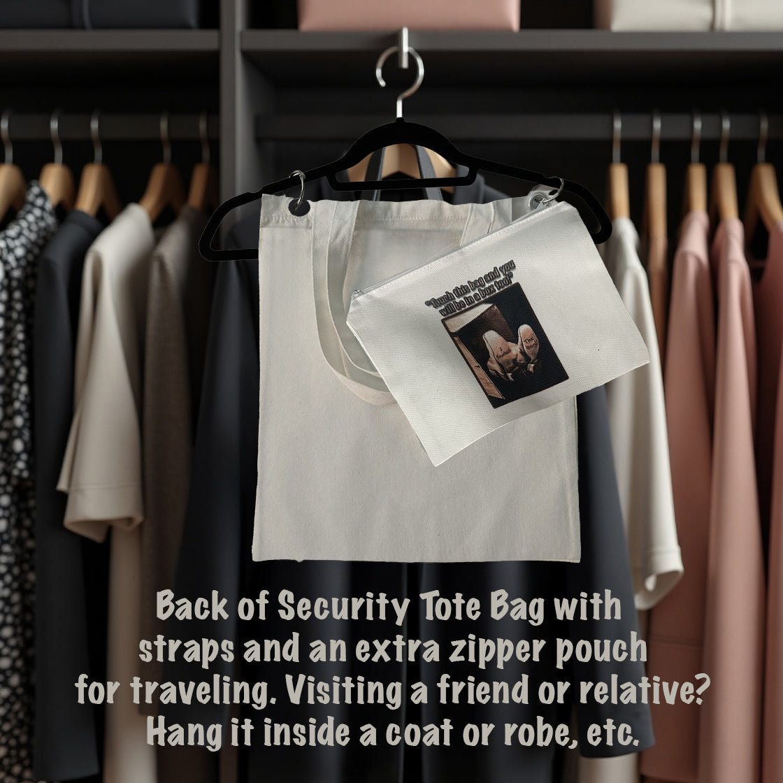 This 13" x 15" tote bag offers a discreet and elegant solution for storing your private belongings. Designed to hang securely on most closet hangers via two convenient rings, it creates a hidden space for essentials like wallets, credit cards, USB backups, snacks, or personal notes. Perfect as a sophisticated gift, this whimsical bag provides a clever “no intrusion” zone—ideal for a spouse, a mom’s secret stash, or anyone valuing privacy and organization. The hanger is not included, allowing you to use your favorite closet accessory. After you attach the bag to your closet hanger, Hang a Jacket or a robe, etc. over it and close the front. Hang it in with a bunch of other clothing in the closet and it will be hard to find. Don't let them know when you get it. Great for bridesmaids gifts ideas. There is also an extra zipper pouch in the back for cash or credit cards, etc. The hanger is not included. These bags are great for traveling and staying in hotel rooms or at your relatives homes. More whimsical themes coming. Free shipping.