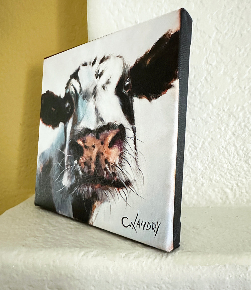 Cow Wall Art, 'Whiskers', Cow Reproductio on a 8"x 8" Wrapped Canvas by Artist Carol Landry