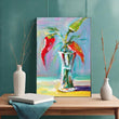 Add a spice of color to your kitchen with this reproduction of a vibrant chili peppers painting by Carol Landry. Made with acrylics on an 8"x 12" wrapped canvas, this piece is perfect for chili pepper lovers. The .075" deep sides are painted black and it's ready to hang. #kitchenart #chilipepperlove.