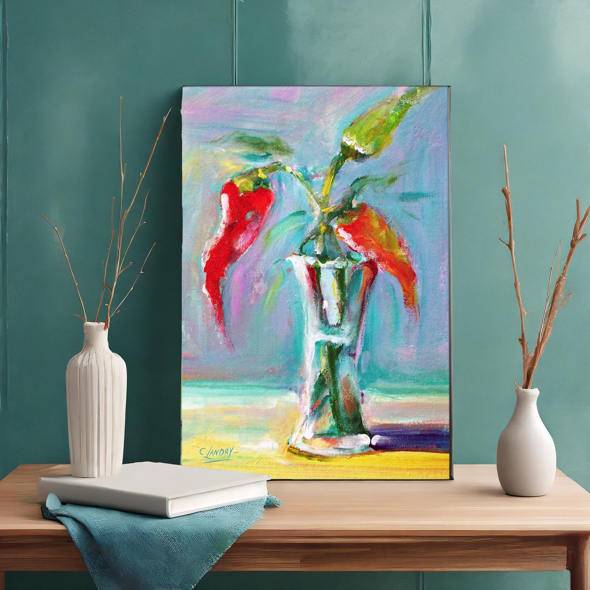 Donna's Chili Peppers Reproduction on 8"x 12" Wrapped Canvas by Artist Carol Landry