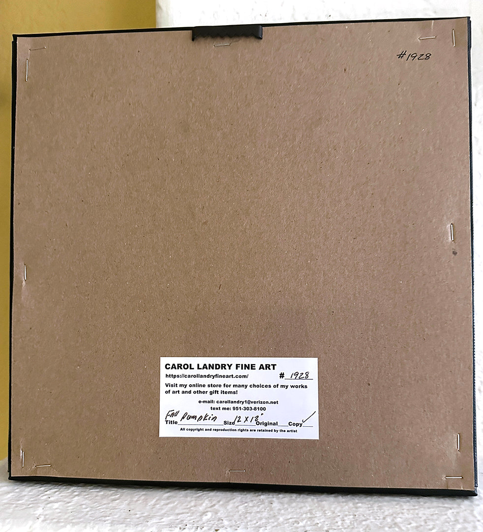 Fall Pumpkin Painting, 12"x 12" Reproduction on a Wrapped Canvas by Artist Carol Landry