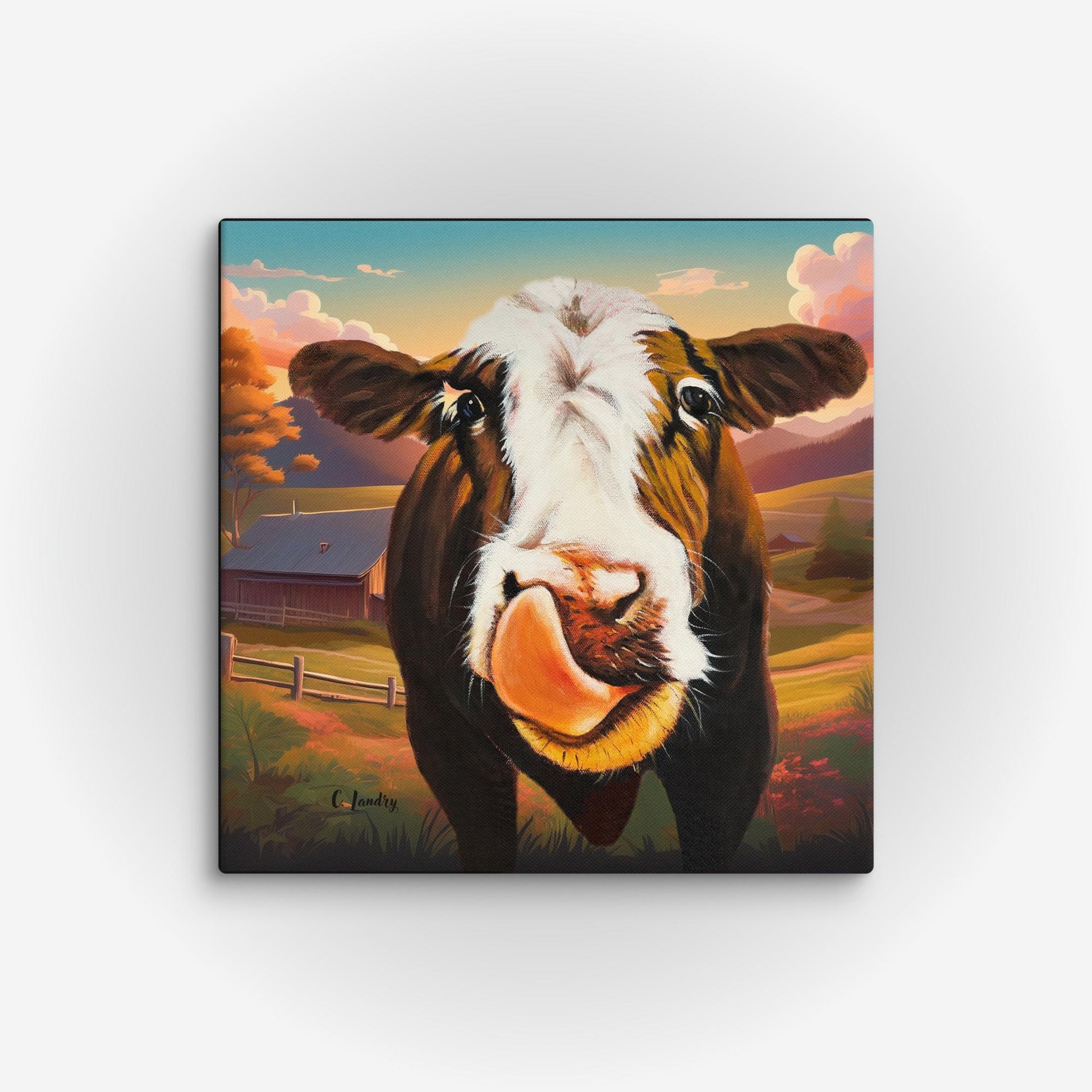 Farm Scene with Albert Cow, by Artist Carol Landry
