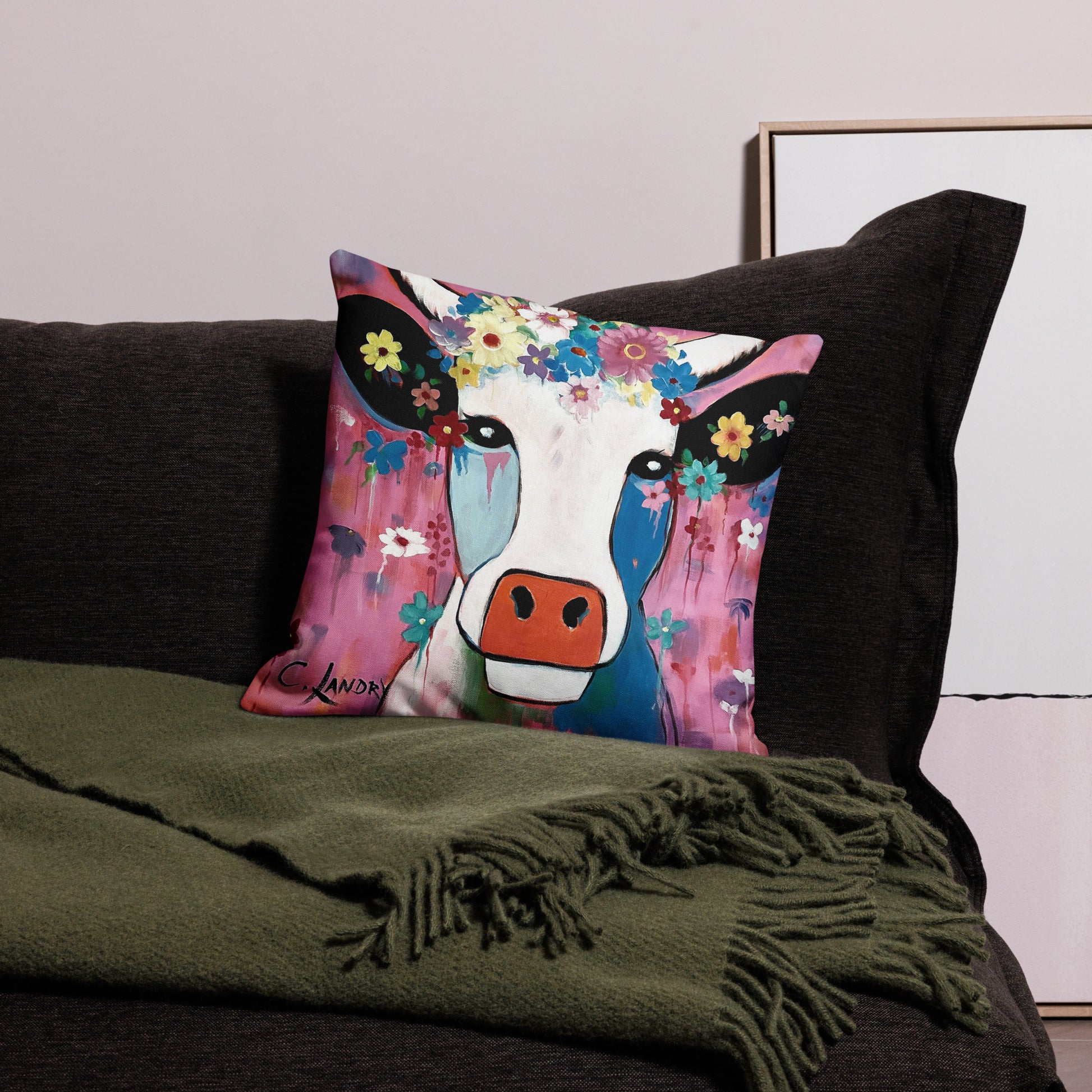 Premium Pillow Case with, 'Dreams of Flowers Cow', by Artist Carol Landry