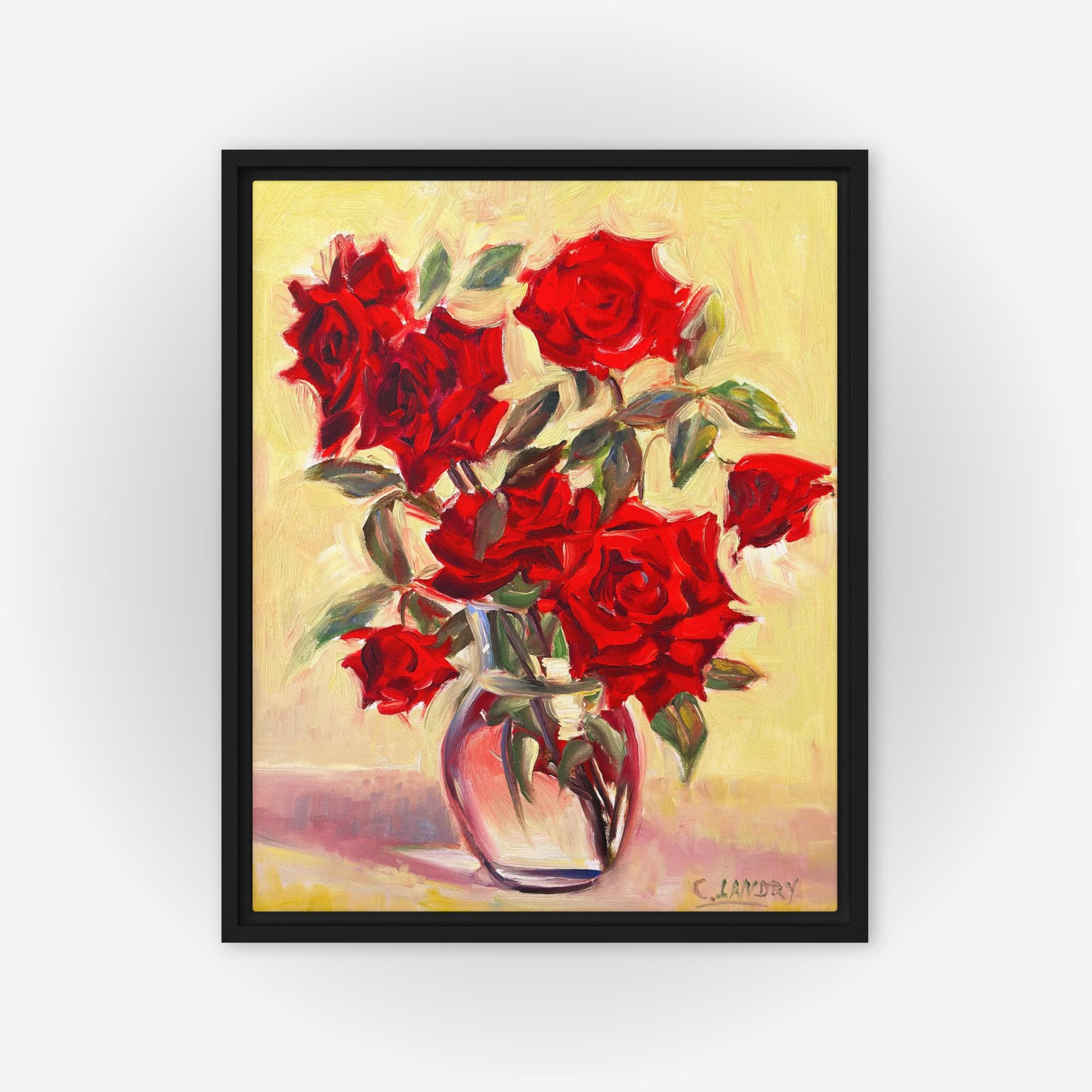 Red Roses Painting Reproduction on Canvas, Framed. Artist Carol Landry