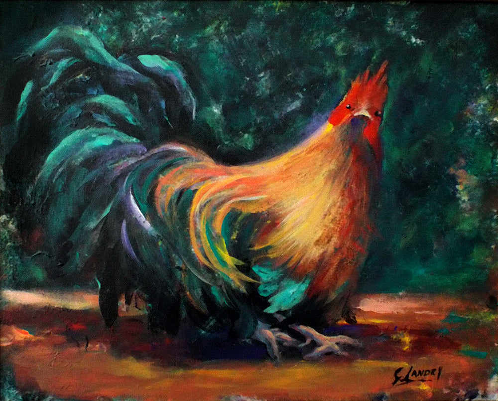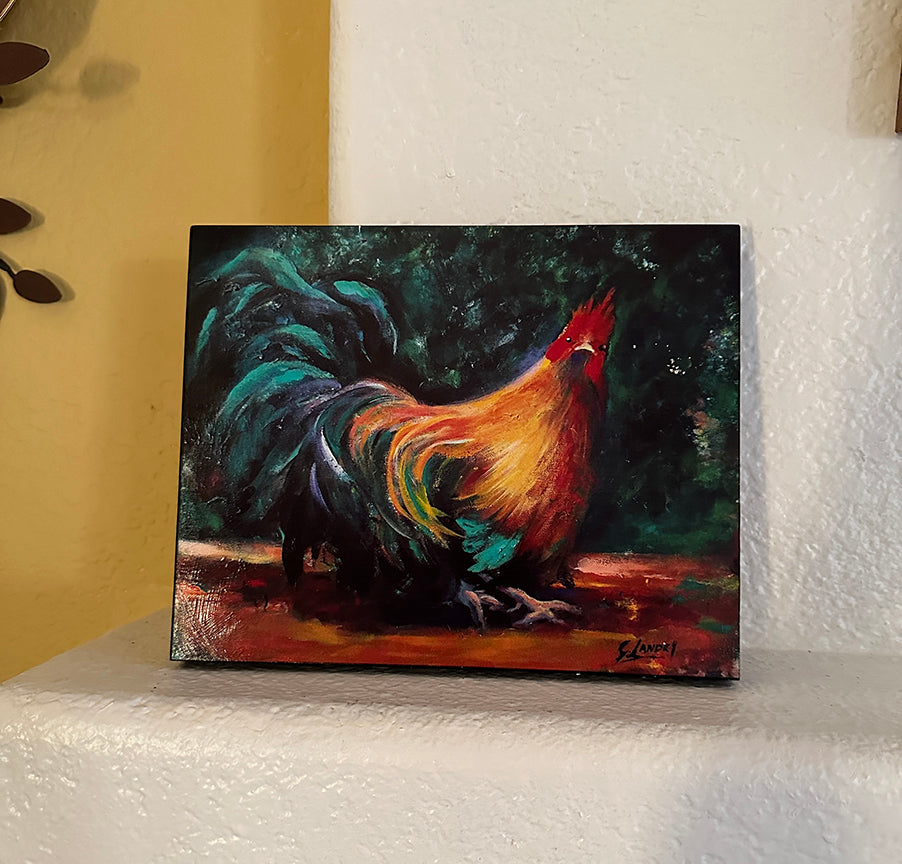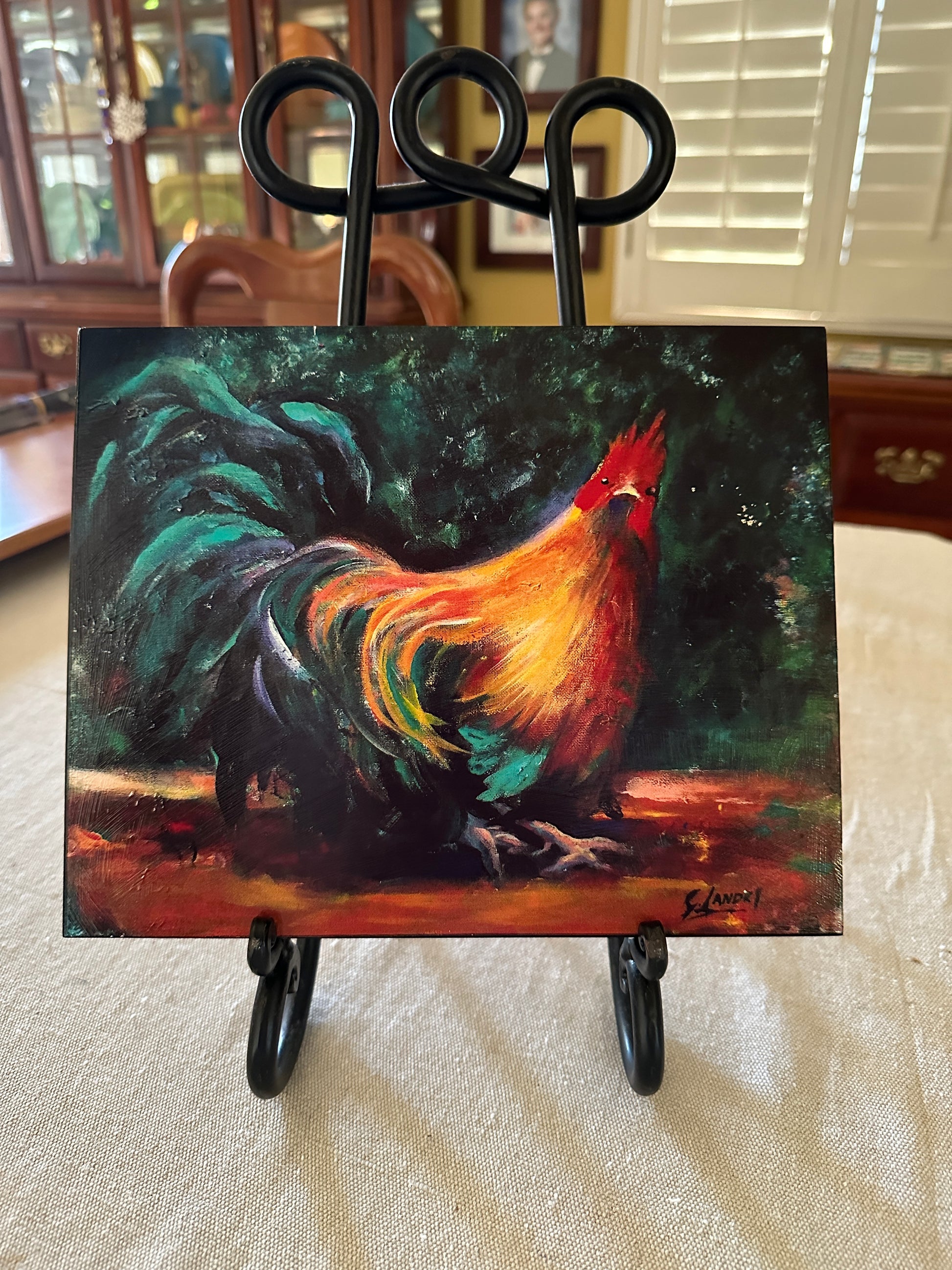 Rooster Art, 'Portrait of a Rooster', Painted by Artist Carol Landry, 8"x 10" Copy on Wood.