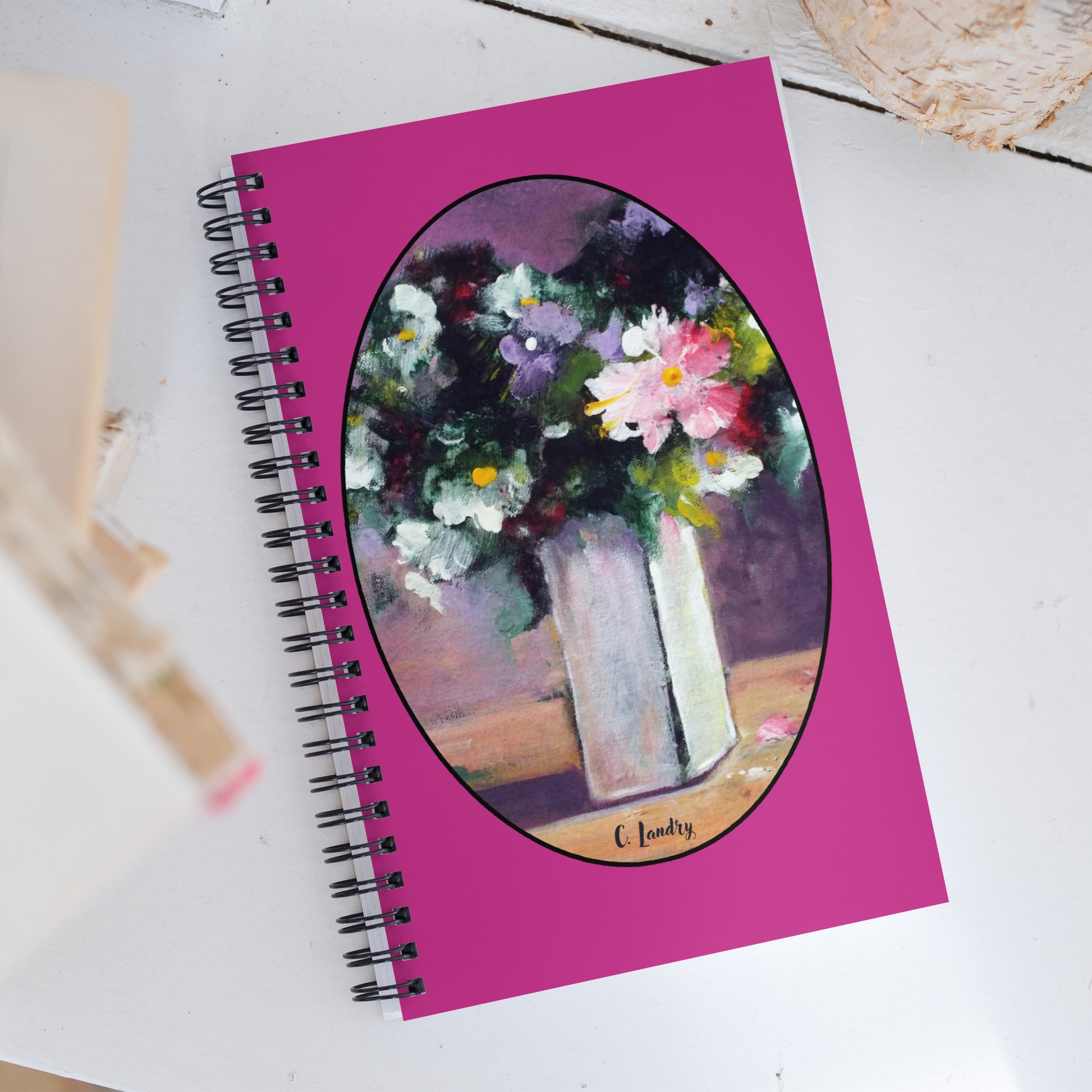 Notebook Spiral with a Violet Floral Design, by Artist Carol Landry