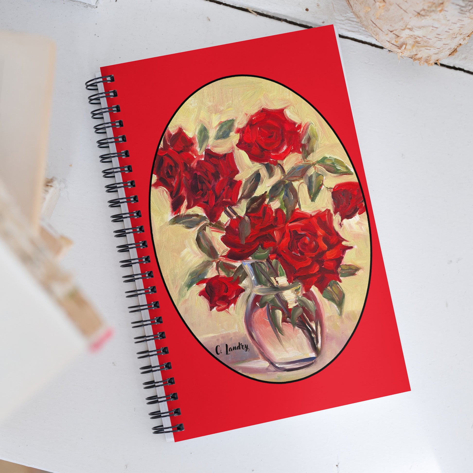 Spiral notebook with Red Roses Art by Artist Carol Landry