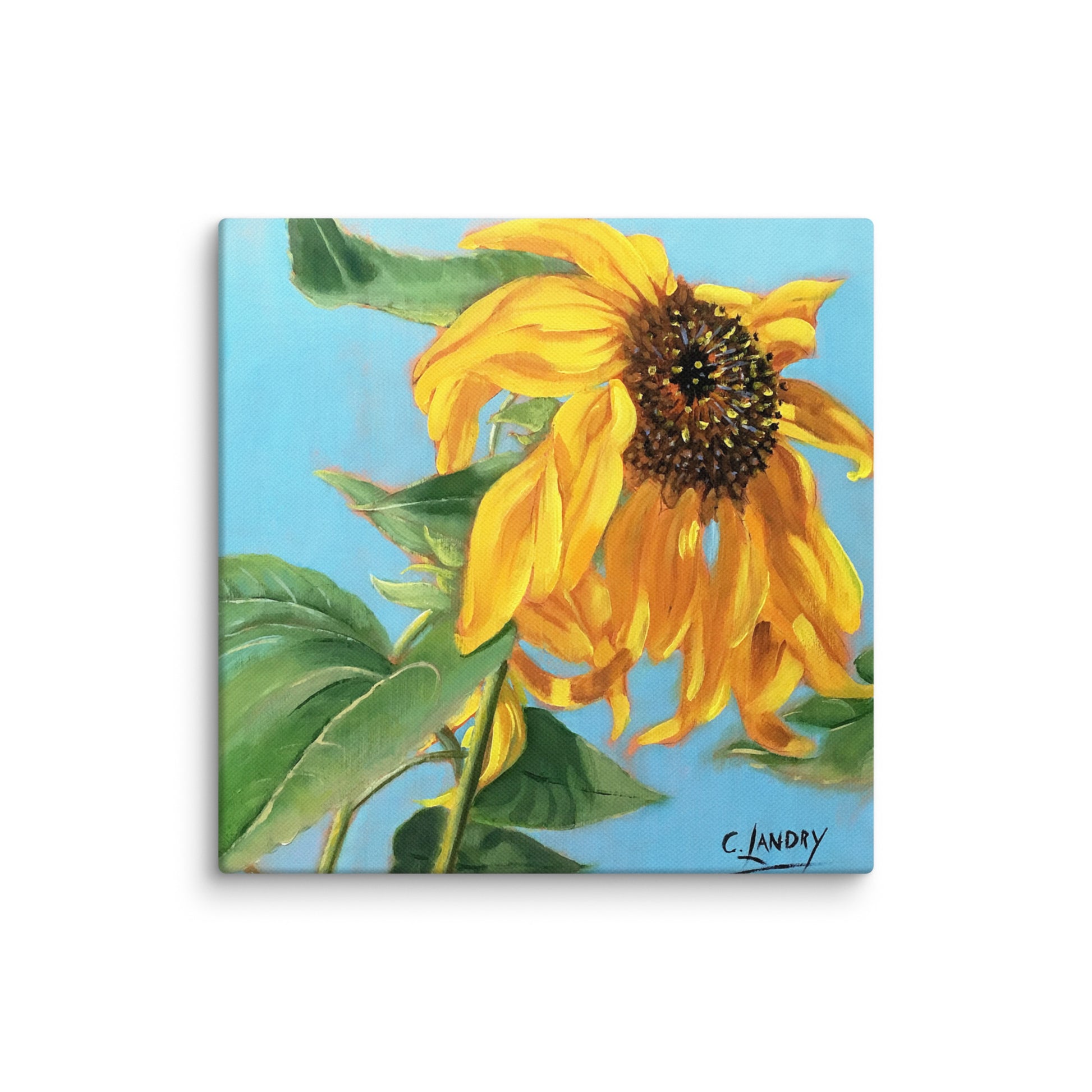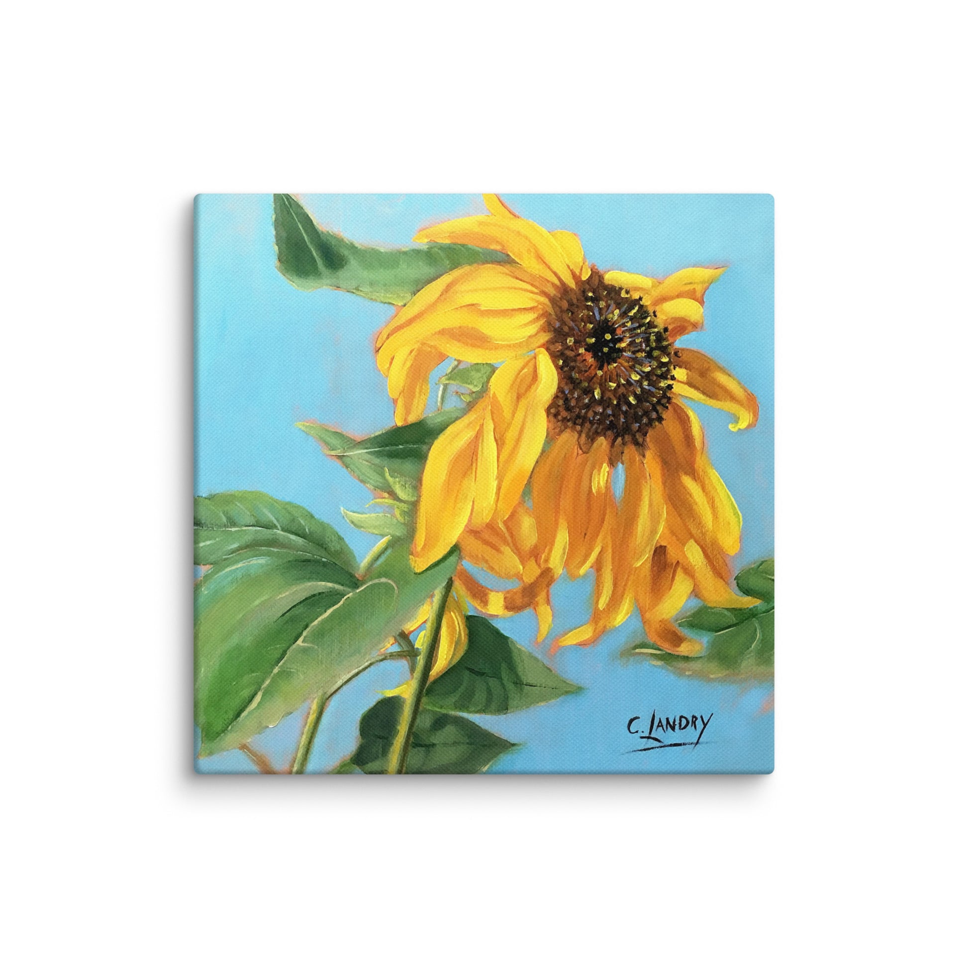 Sunflower, 'Painting on Wood', Reproduction on a Wrapped Canvas, 3 sizes, by Artist Carol Landry