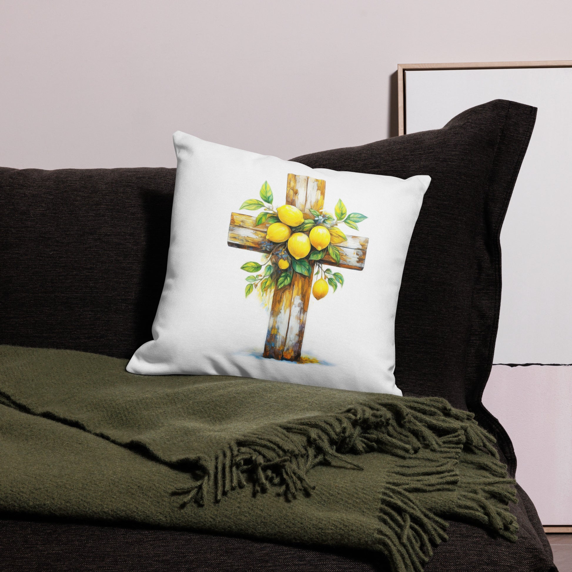 Throw Pillow Case with a Cross with Lemons Design