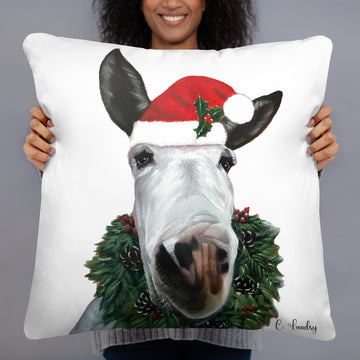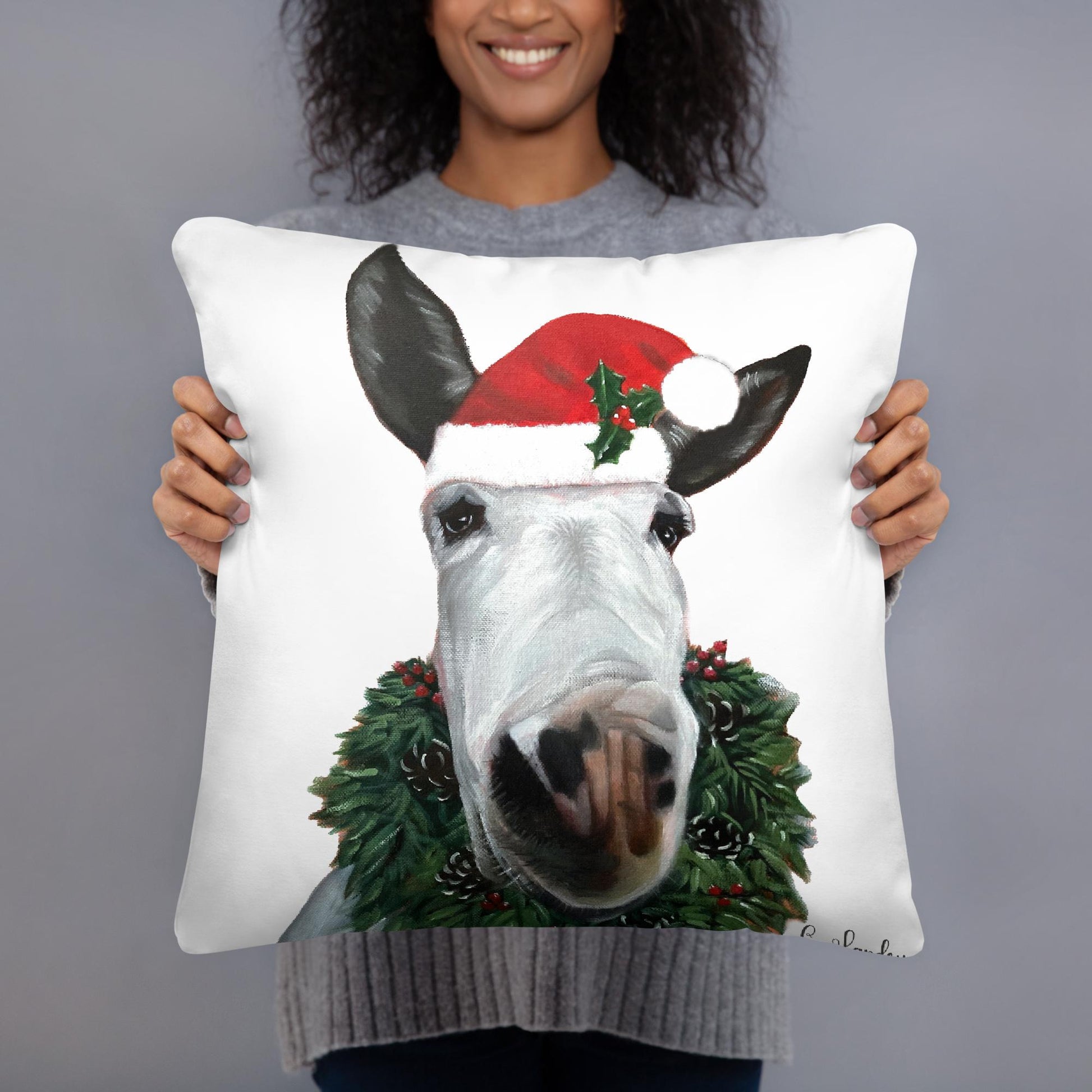 Throw Pillow, Christmas, 'Fred the Donkey', by Artist Carol Landry