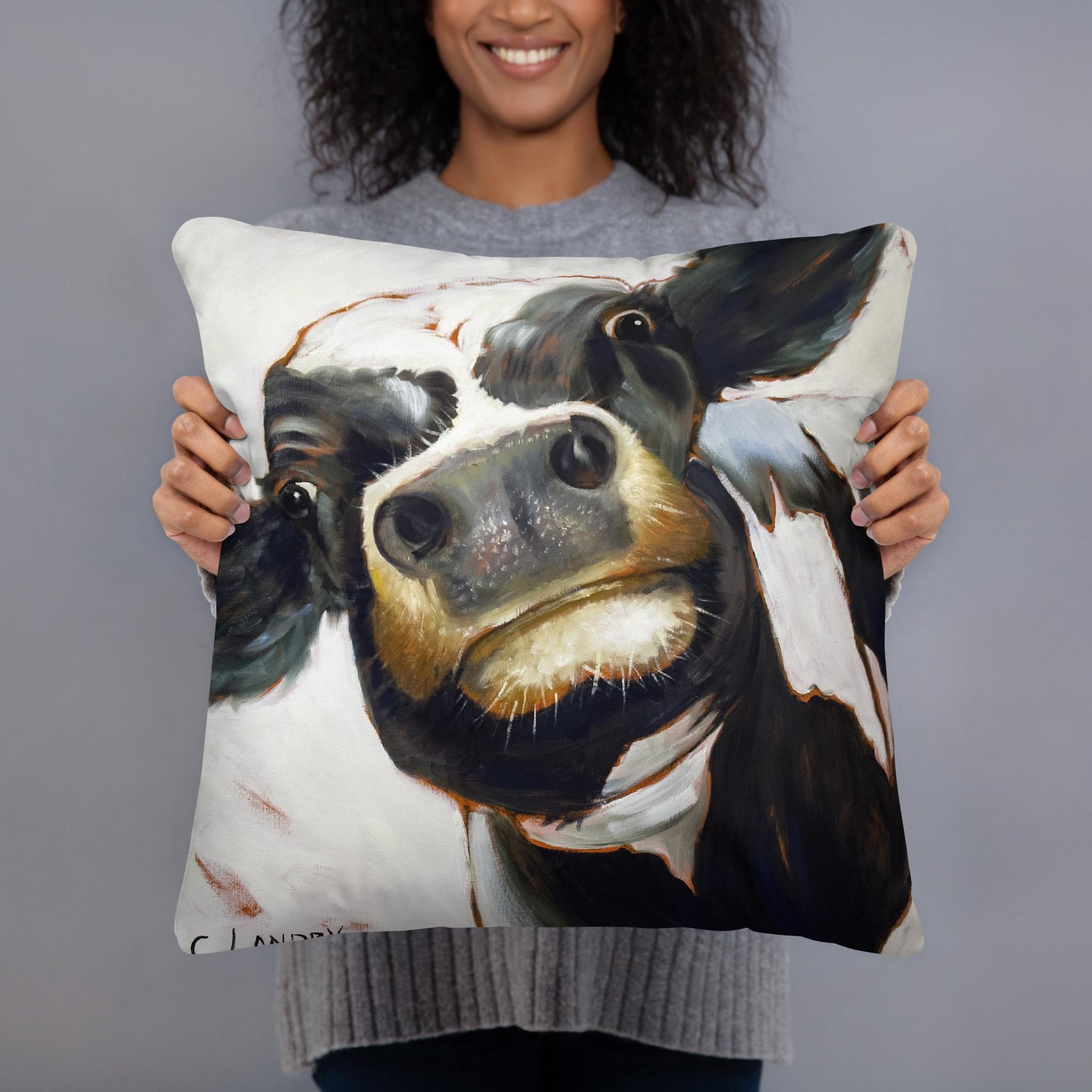 Throw Pillow, Cow Decor, 'Close Up Cow', Cows Decor, Artist Carol Landry