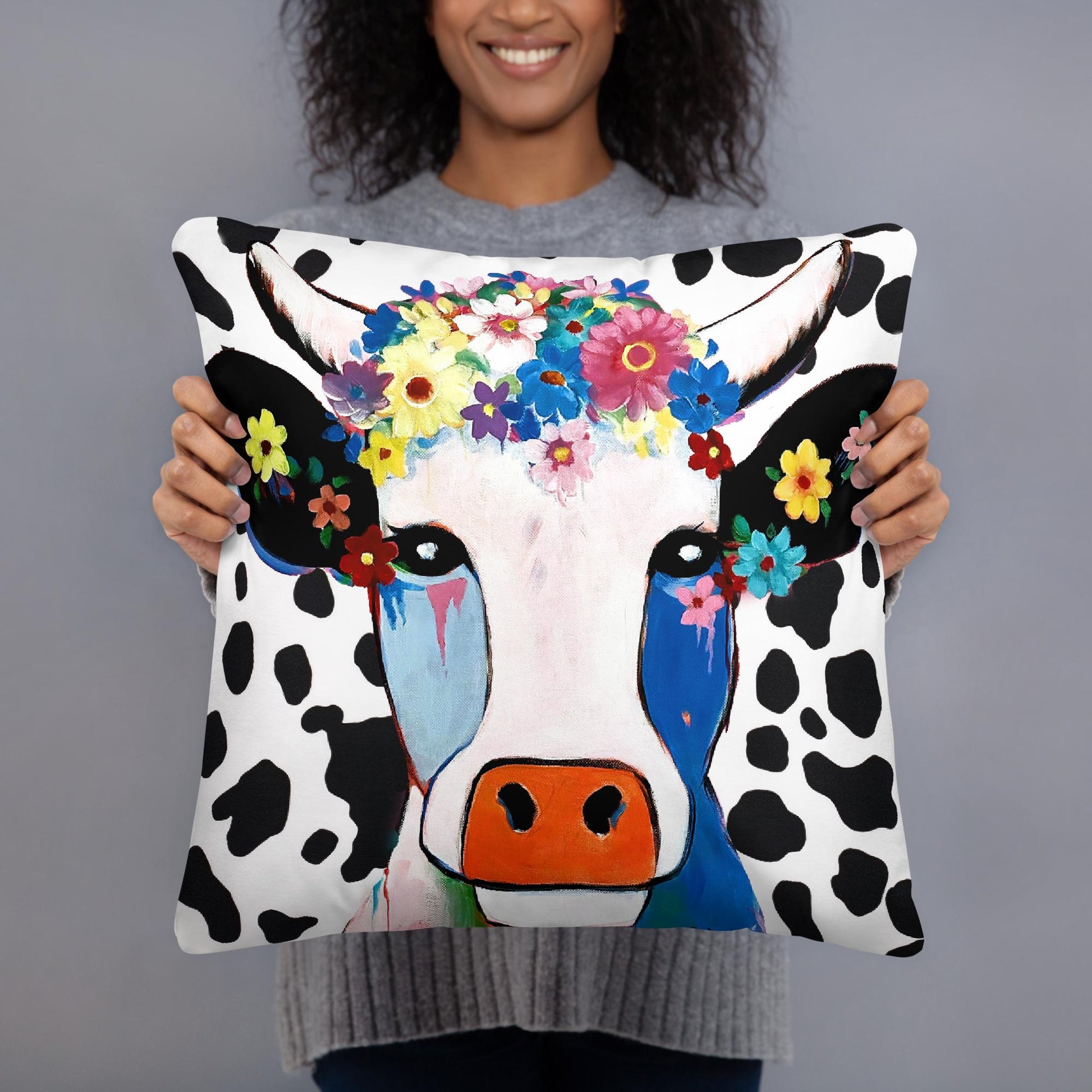 Throw Pillow, Cow Spots & Abstract Cow, Painted by Artist Carol Landry