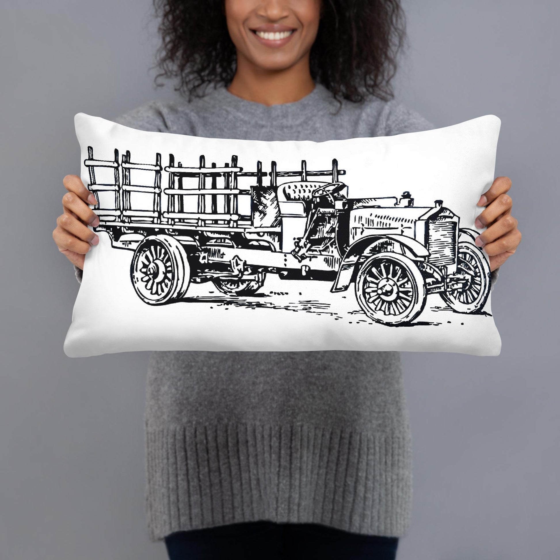 Throw Pillow with a Old Farm Wagon, Line Drawing, Farmhouse Decor