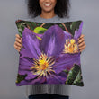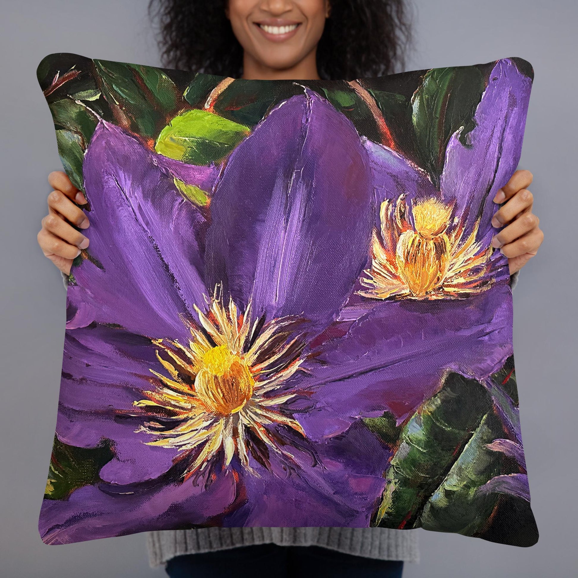 Throw Pillow with Purple Clamatis Flowers Design, by Artist Carol Landry