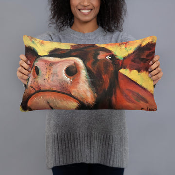 Throw Pillow with Rainy Day Cow on it by Artist Carol Landry
