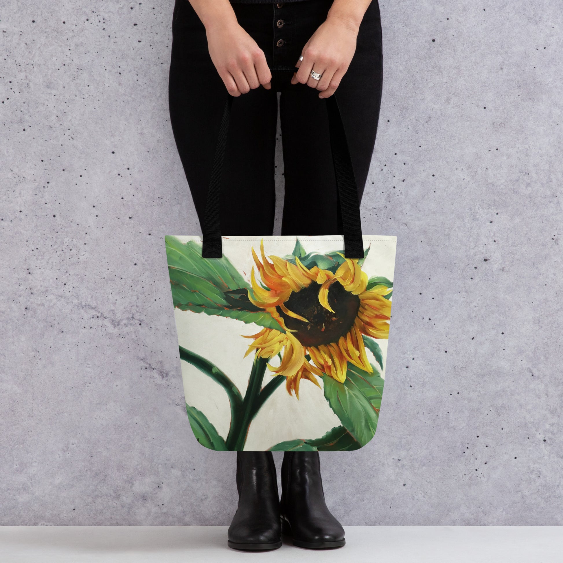 Tote bag with 'Sunflower in the Wind' by Artist Carol Landry