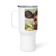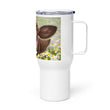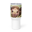 Travel mug with a handle with Camila Cow by Artist Carol Landry