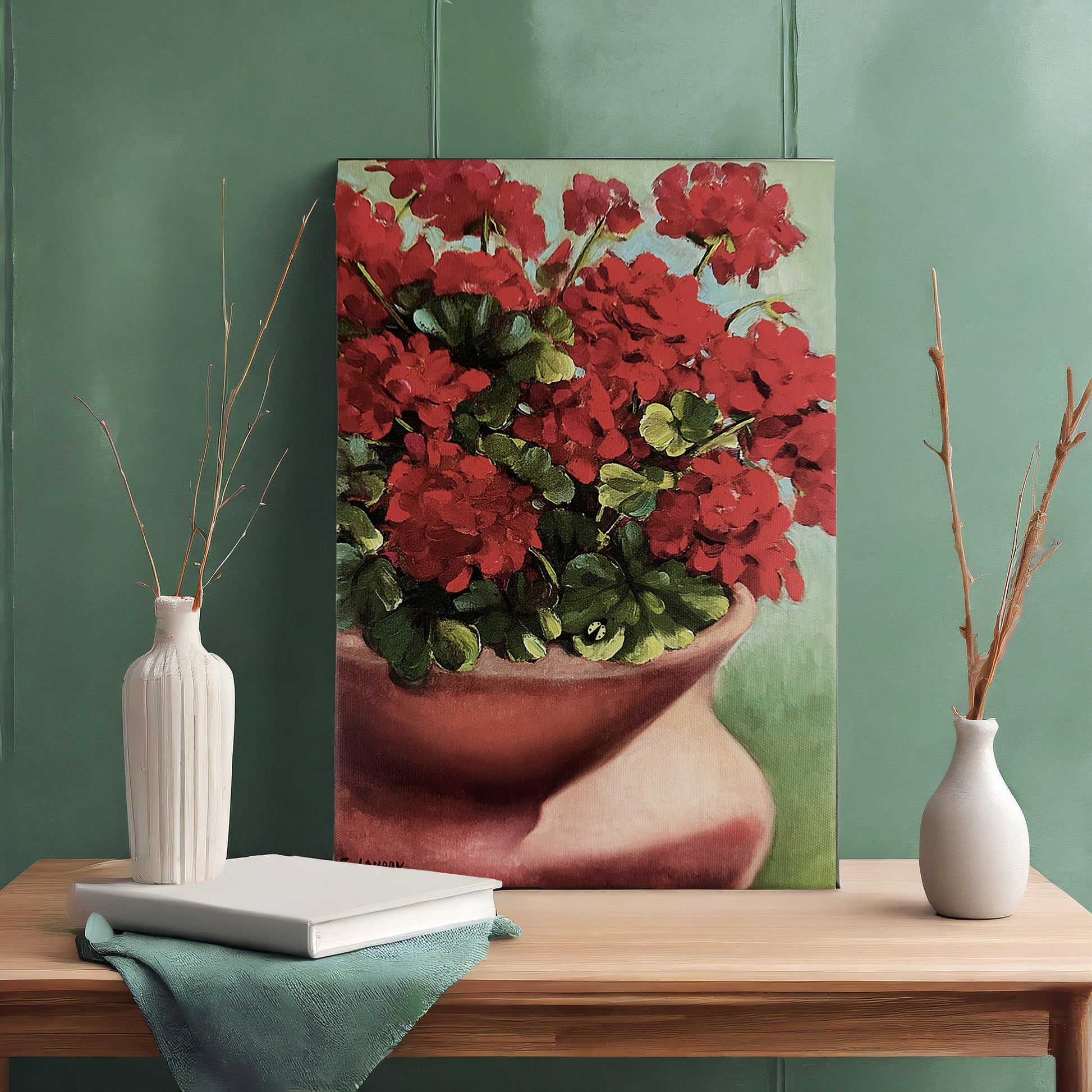 Wall Art, 'Patio Gerainiums' Reproduction by Artist Carol Landry, 8"x 12" on a Wrapped Canvas