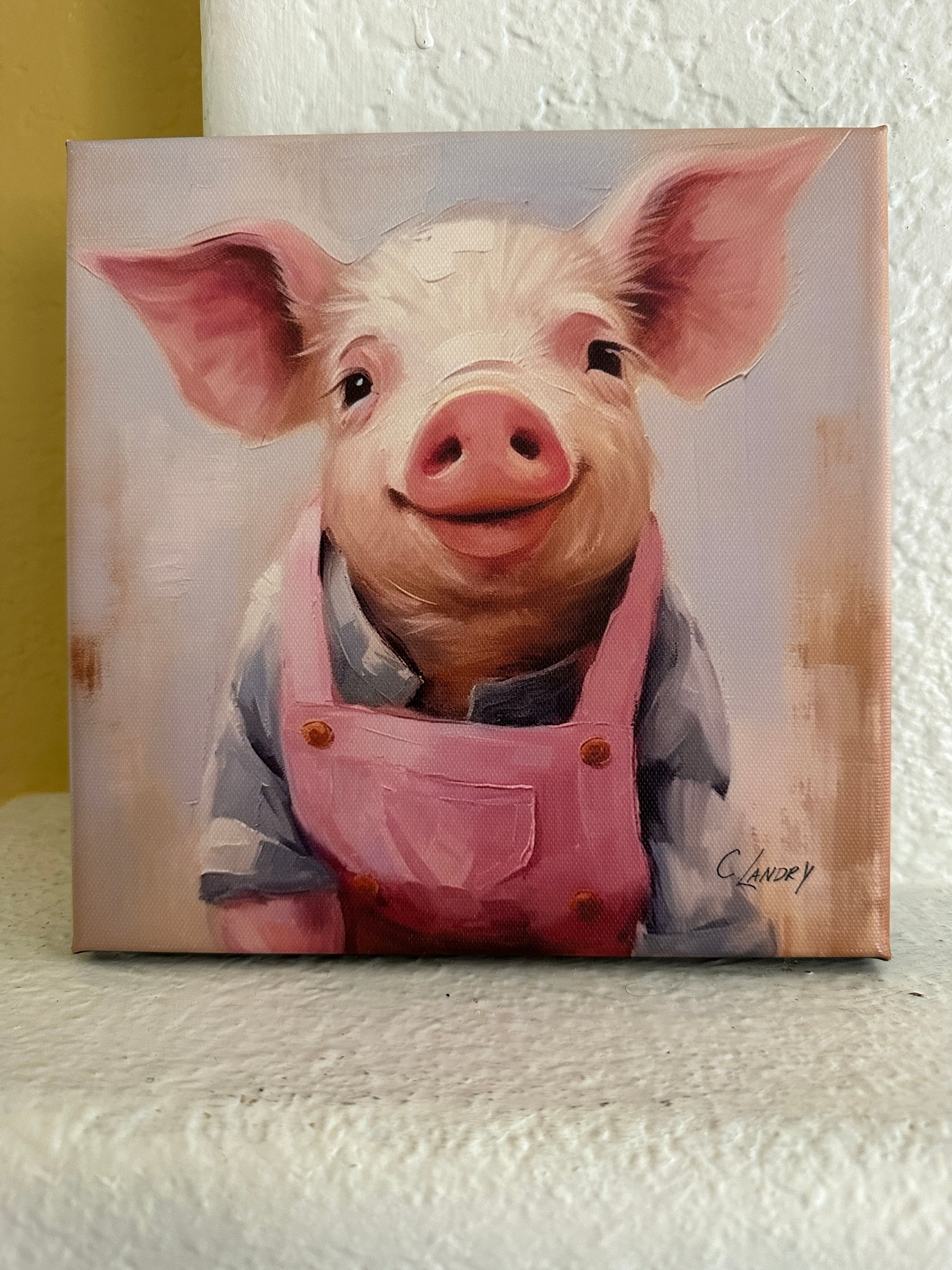 Enhance your home decor with this charming 'Piggy Farmer' digital artwork, printed on a high-quality 8"x 8" wrapped canvas. The vibrant colors and crisp details will bring life to any room. Plus, it comes ready to hang, making it a hassle-free addition to your space.