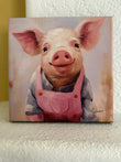 Wall Art, 'Piggy Farmer' Digital Art on a 8"x 8" Wrapped Canvas, Ready to Hang.