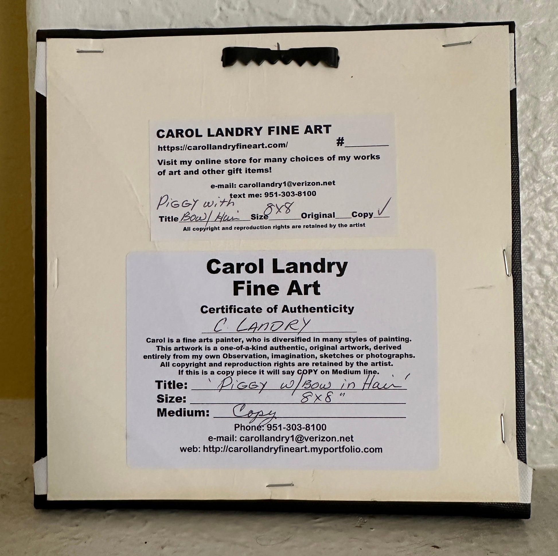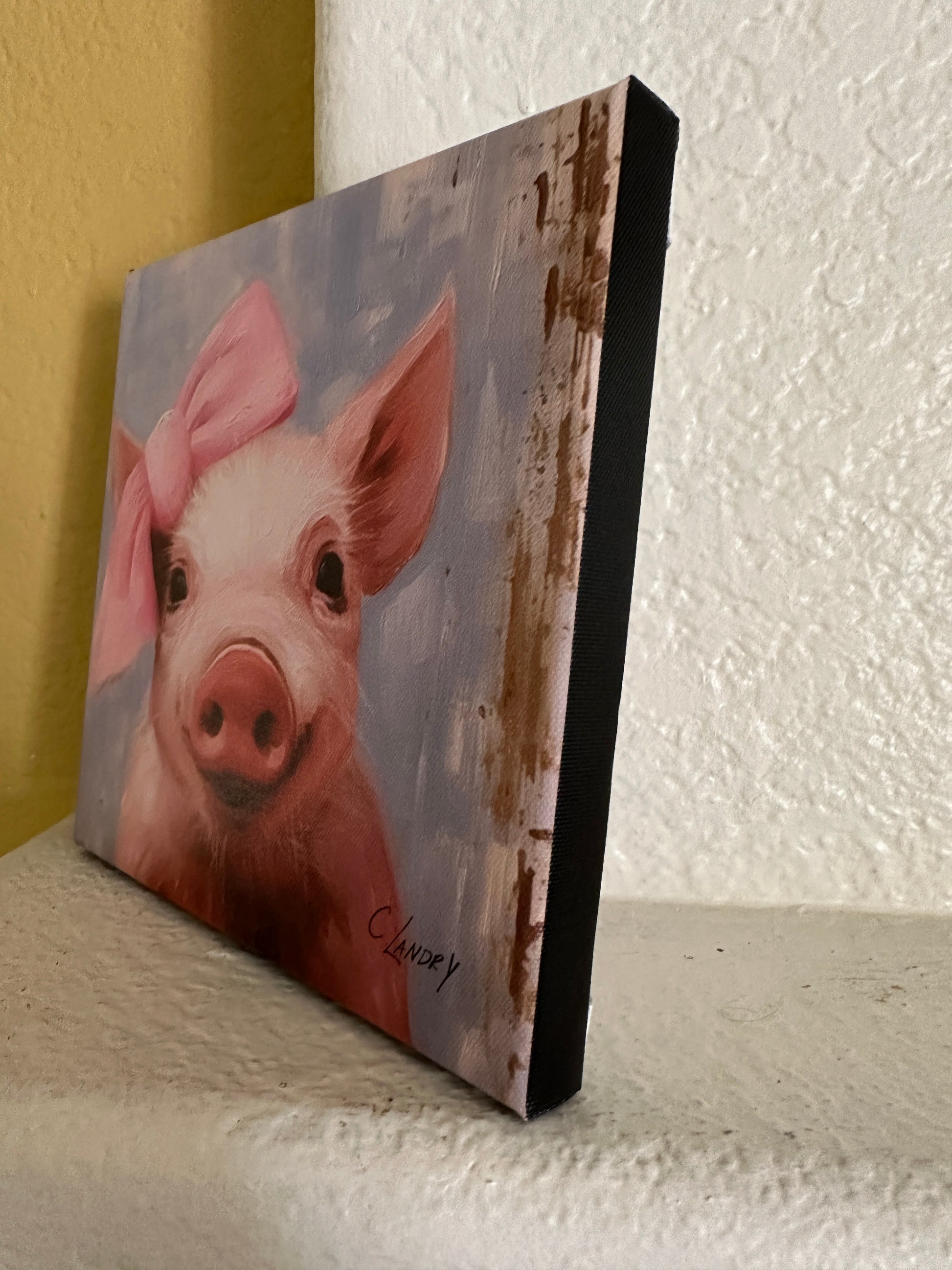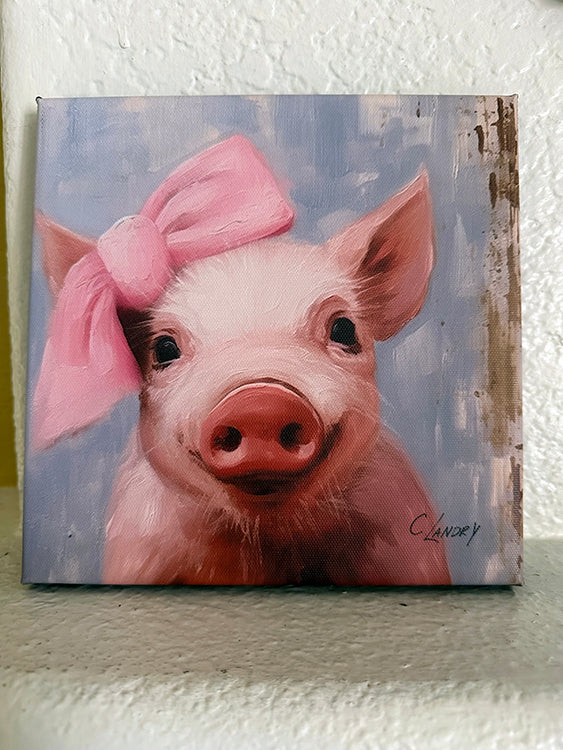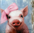 Wall Art, 'Piggy with Bow', Digital Art of a Cute Pink Piggy on a 8"x 8" Wrapped Canvas
