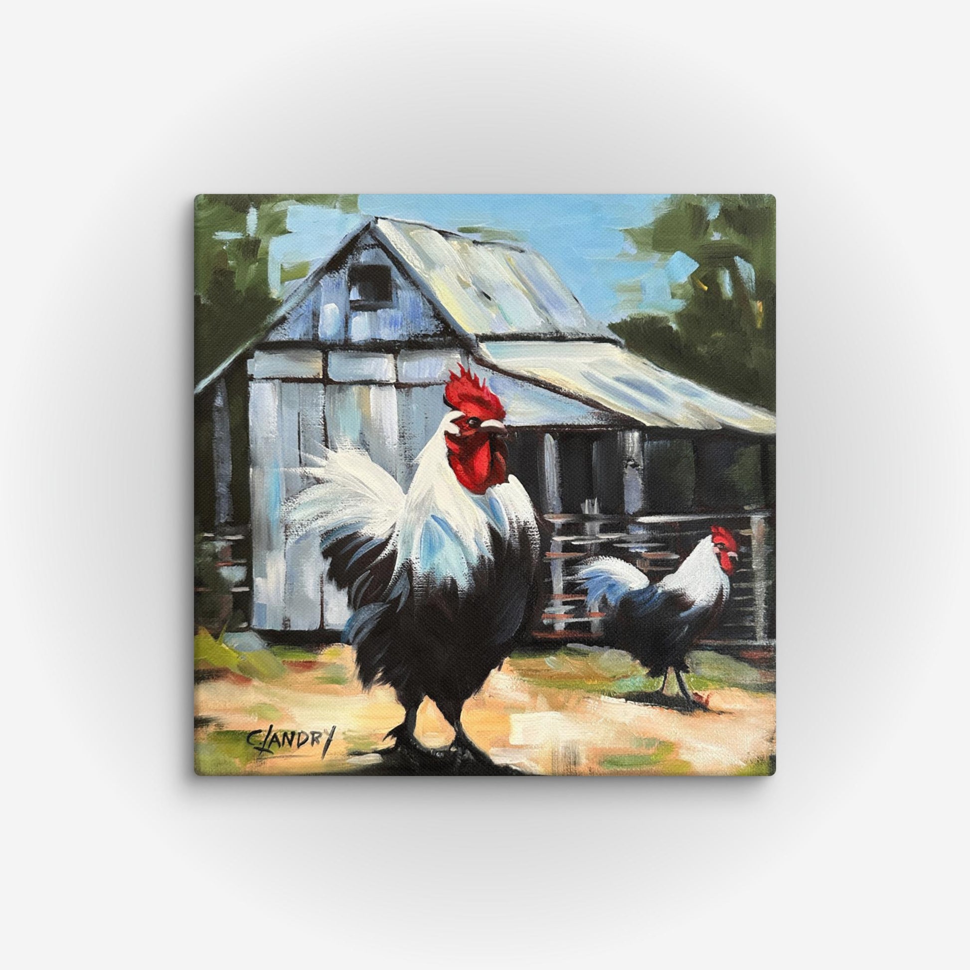 Wall Canvas Art with Roosters Scene Painted by Artist Carol Landry