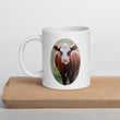 Mug, White Glossy with a 'Hereford Cow', by Artist Carol Landry