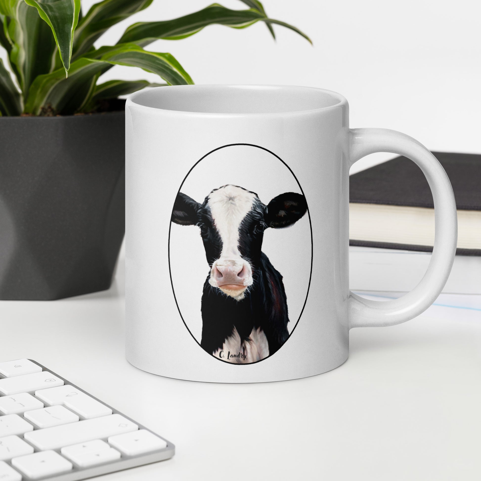 Mug, White Glossy with, 'Bella Cow', by Artist Carol Landry