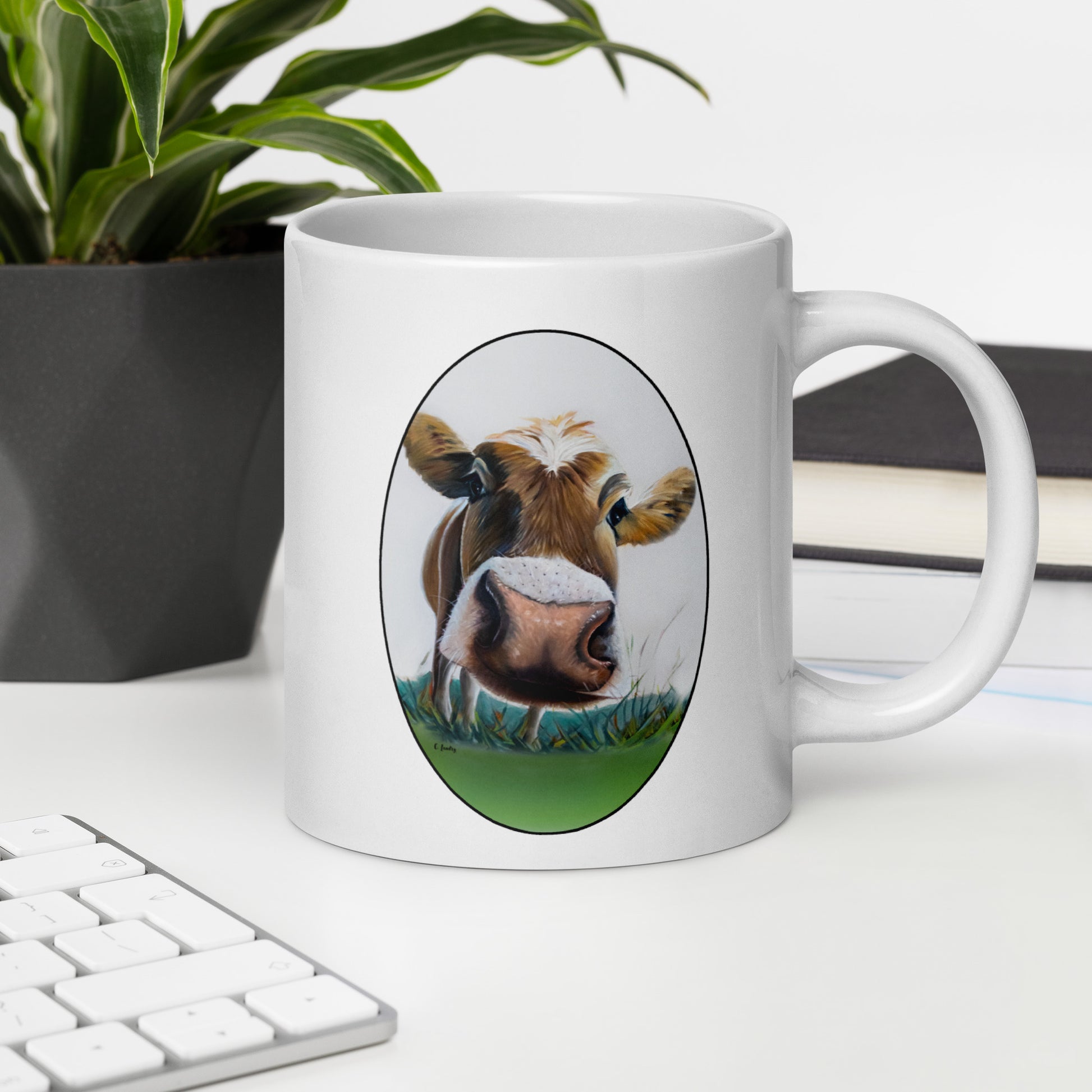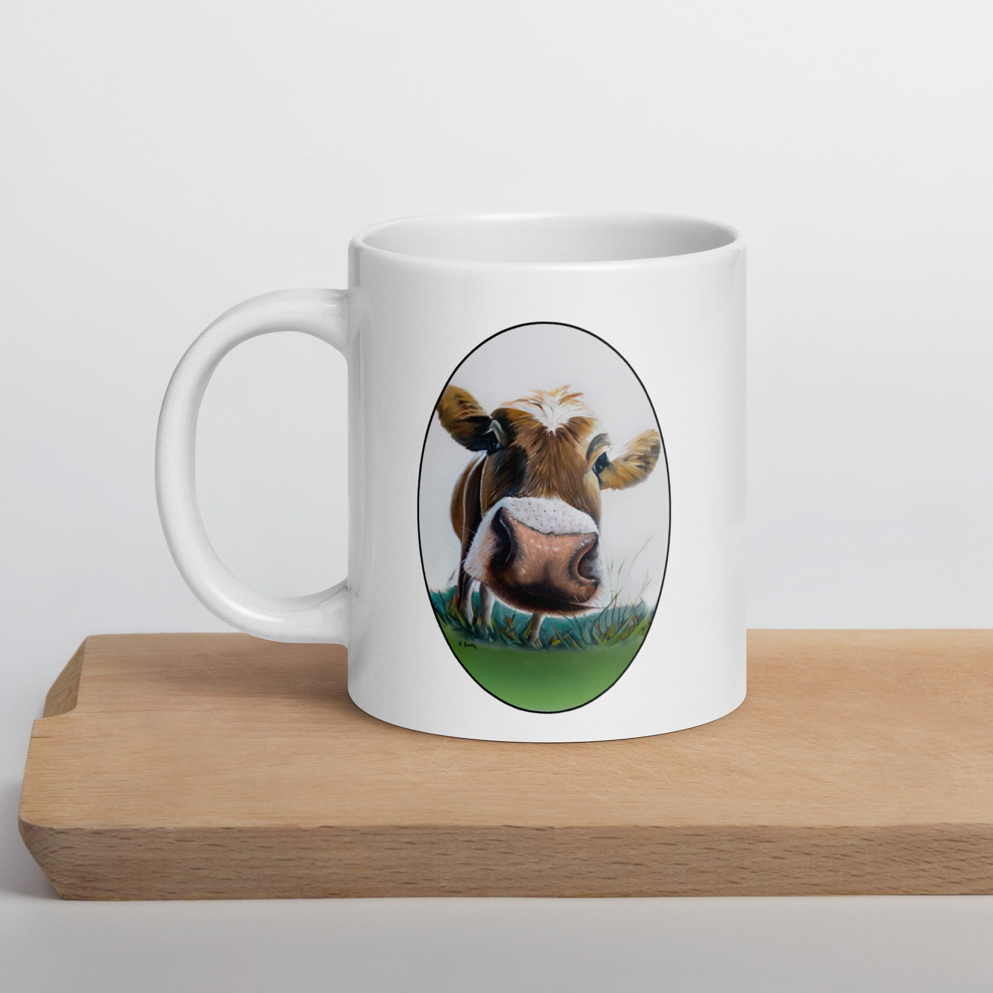 Mug, White Glossy with 'Bessie's Selfi Cow', by Artist Carol Landry