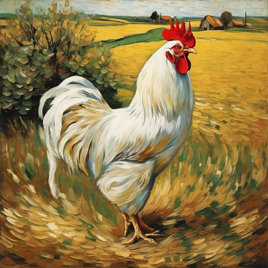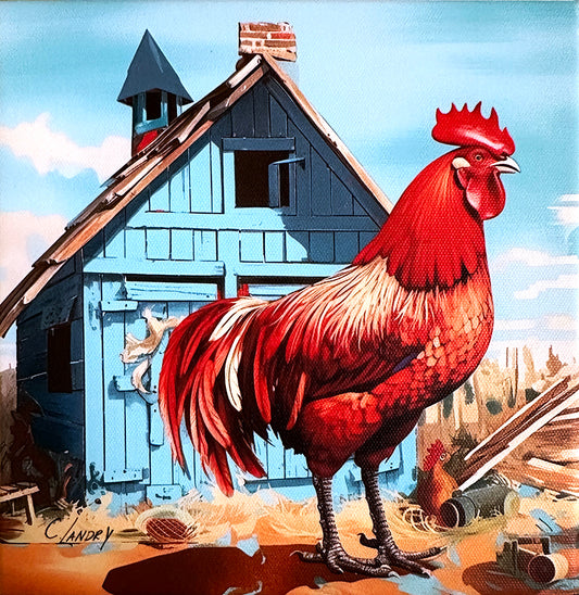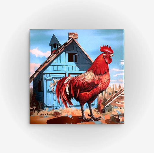 Experience the charm of the countryside with our Rooster Scene Digital Art on 8"x 8"...