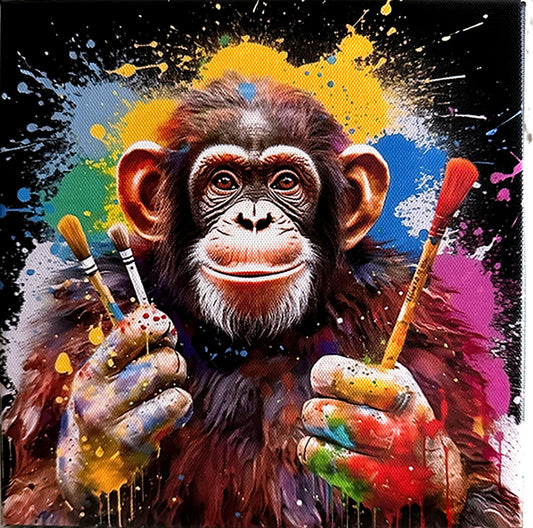 Update your home decor with this unique Monkey Artist Art piece. Featuring a whimsical digital...