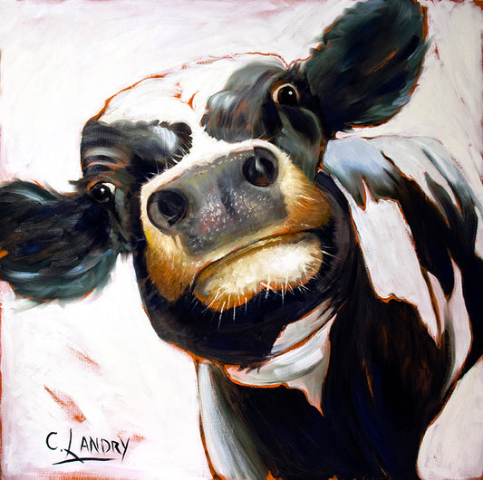 Experience the bold and captivating gaze of 'Big Nose Cow' with this 20"x 20" reproduction...