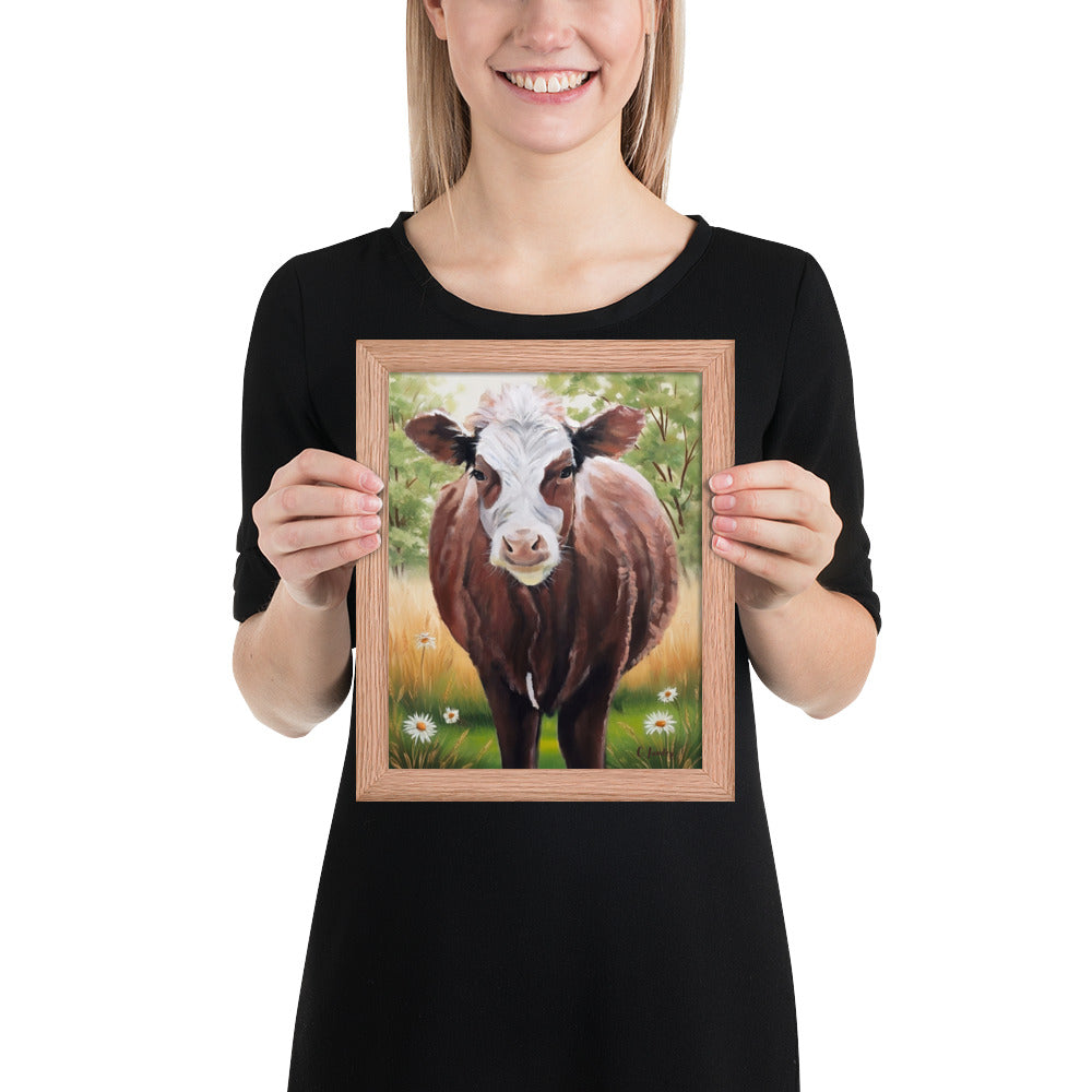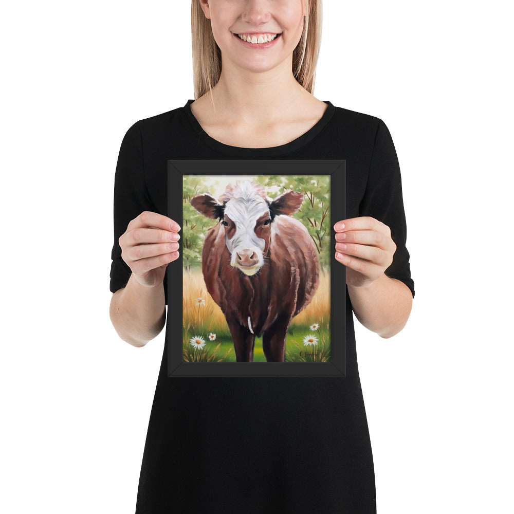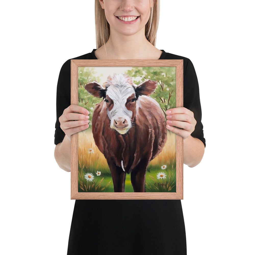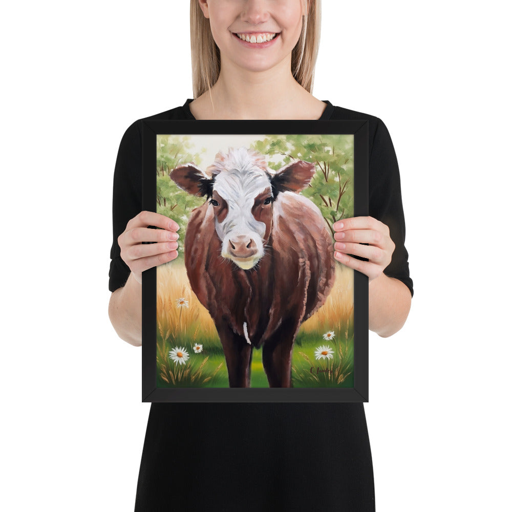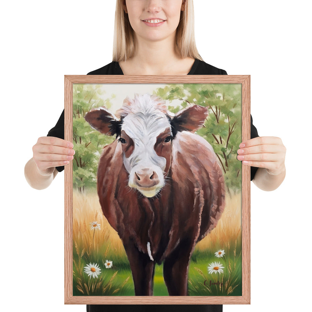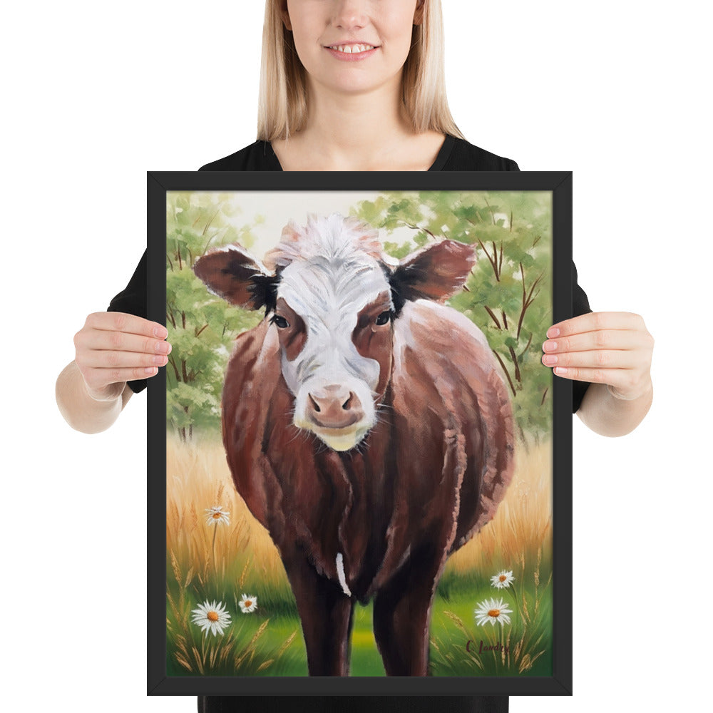 Cow Art in Frame, Hereford Cow Painting by Artist Carol Landry