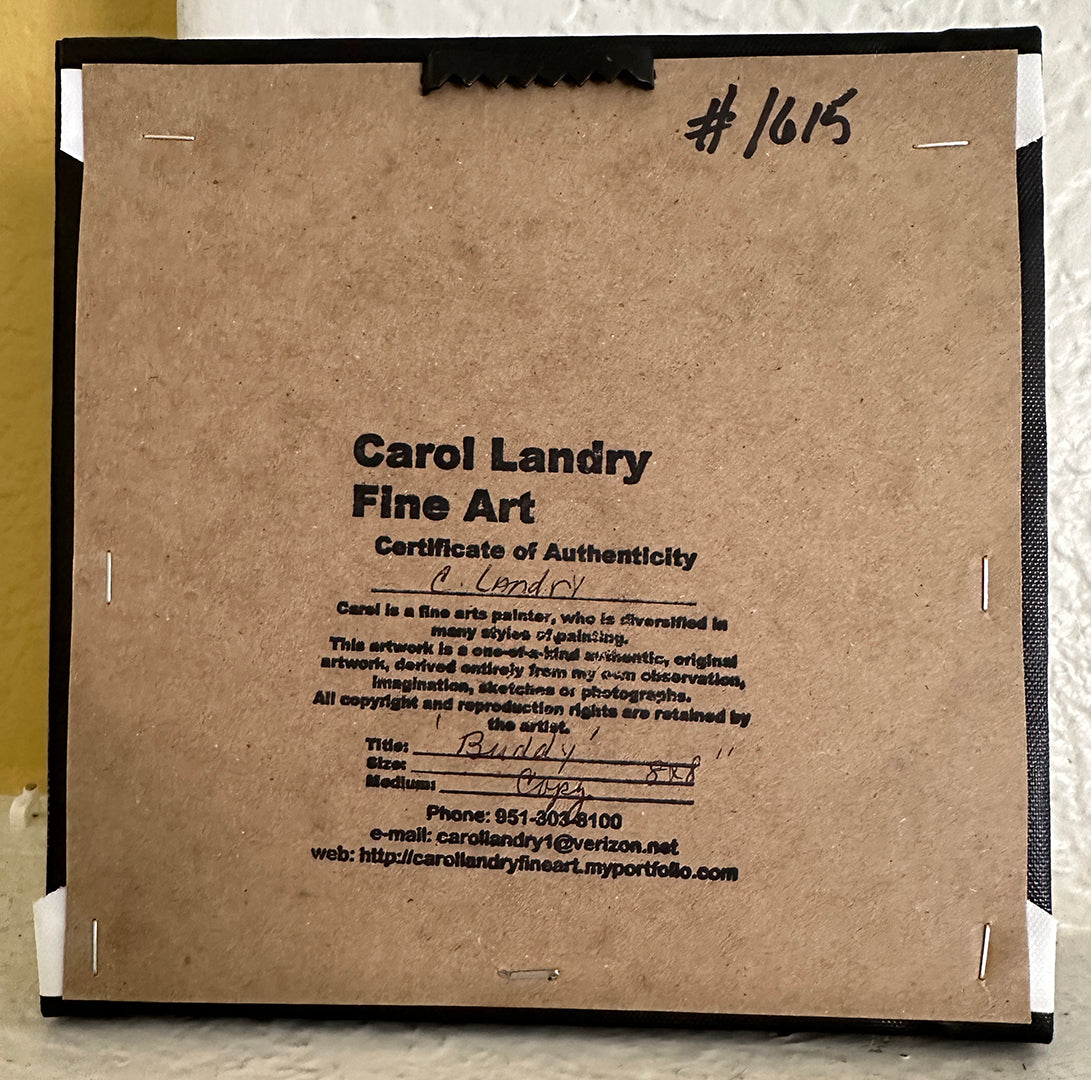 Learn about Buddy, the lovable cow from the Iowa Animal Sanctuary, with this 8"x8" copy on a wrapped canvas. By purchasing this art piece, you'll not only add a charming touch to your space, but also support a worthy cause. Ready to hang, with .75" deep black sides. Perfect for animal lovers.