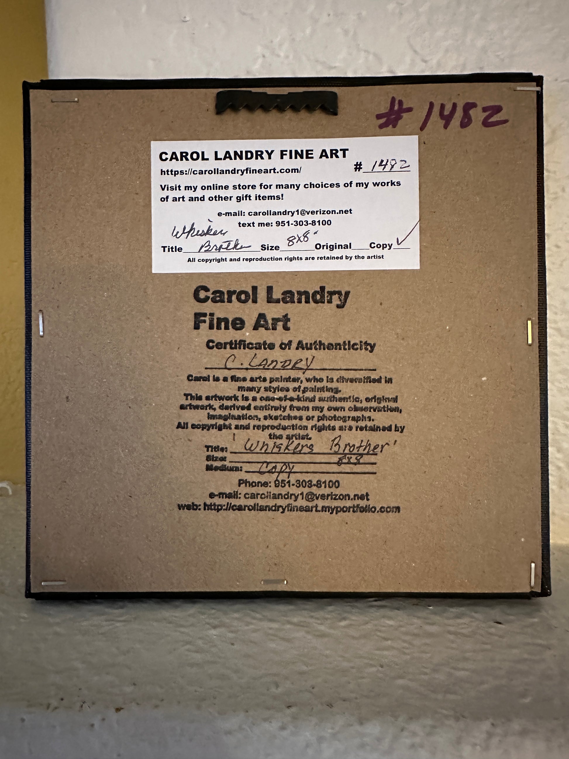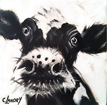 Cow Wall Art, 'Willie Whiskers', 8"x 8" Copy on Canvas by Artist Carol Landry