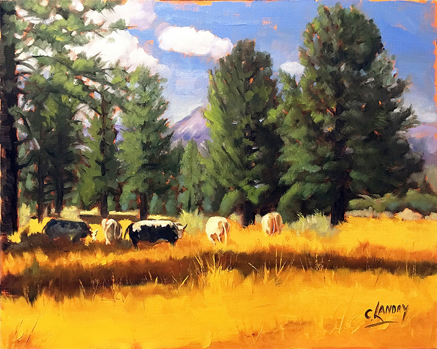 Cows Grazing in Garner Valley, Painted by Artist Carol Landry, A 11"x 14" Reproduction on Canvas