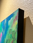 Experience the vibrant spirit of the Southwest with this original acrylic canvas by Carol Landry. Featuring a bold turquoise palette, a large terra cotta pot, and abstract cactus forms accented with black and pink, this 24"x24" artwork adds depth and color to any space. The 1.5" deep sides create a striking presence, making it a perfect statement piece that brings warmth and artistic flair to your home or office.
