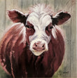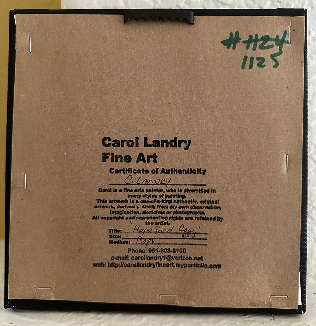 Cow Wall Art, 'Hereford Cow Artwork', by Artist Carol Landry, 8"x 8" Copy on Canvas